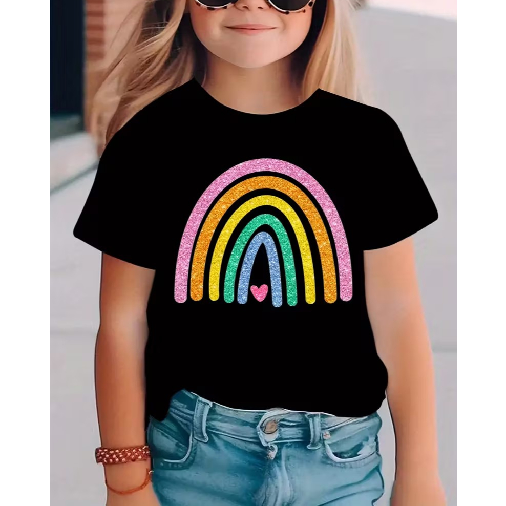 CAMISETA INFANTIL FEMININA 100%ALGODÃO ESTAMPA ARCO ÍRIS