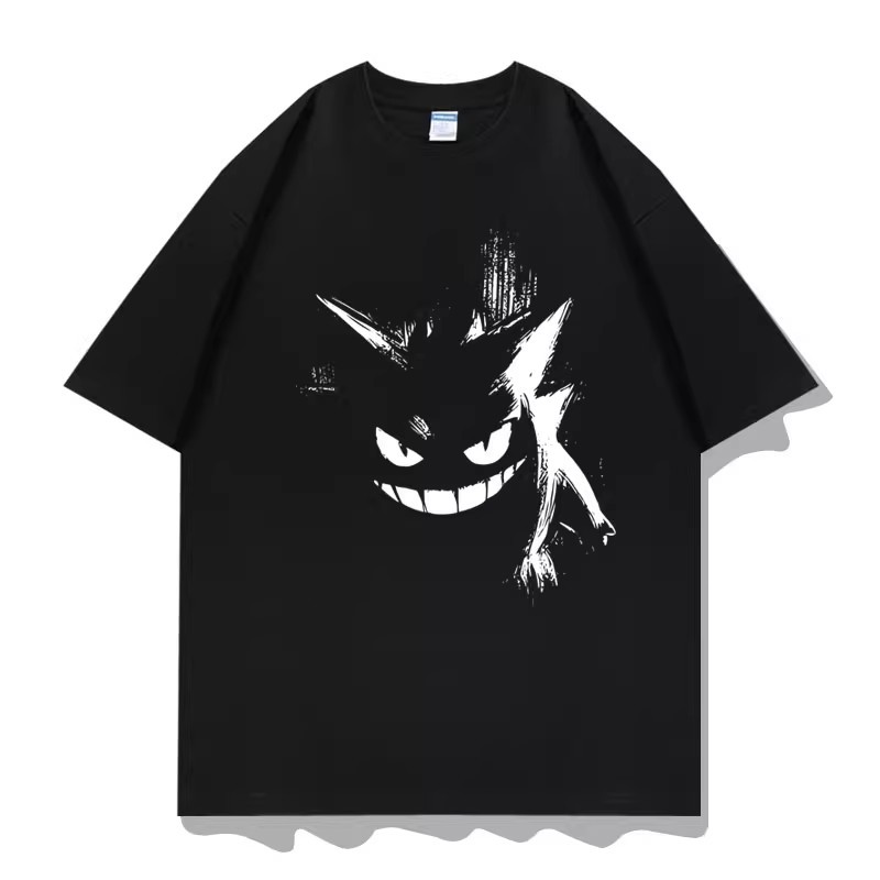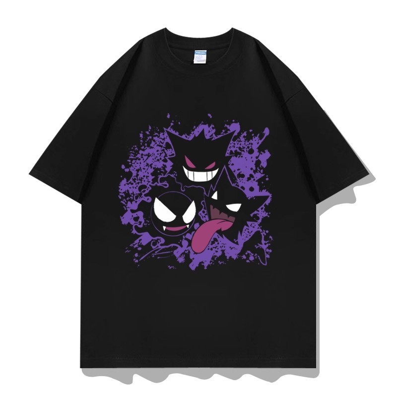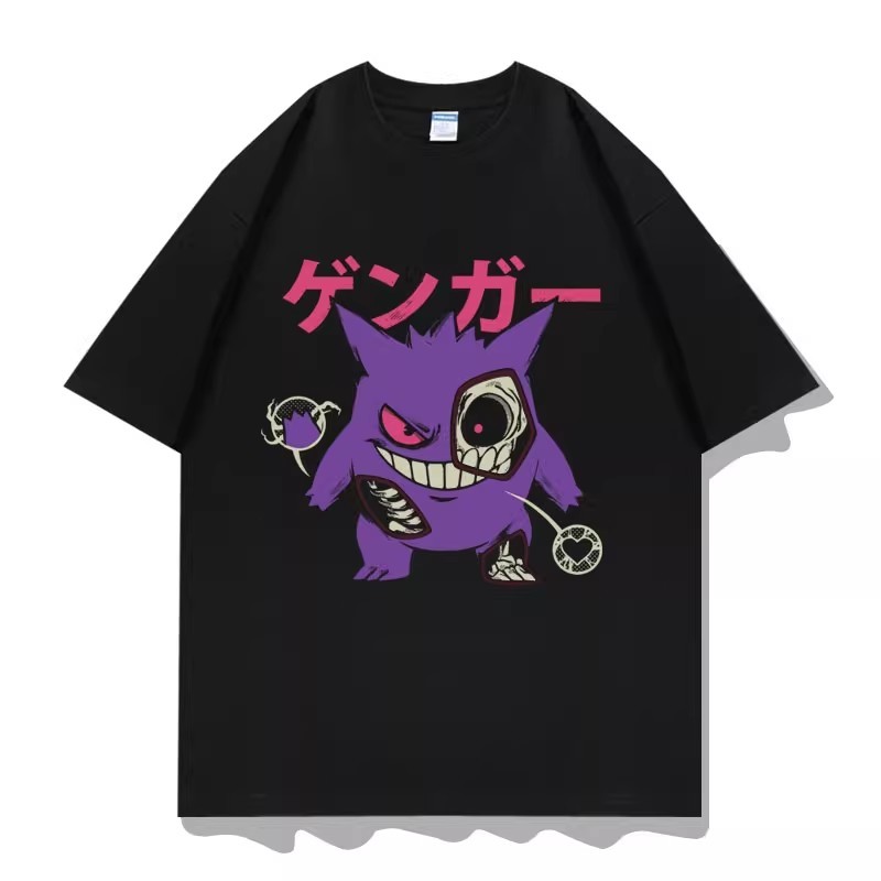 Camiseta plus size com estampa do Gengar, apresentando personagens de anime/Pokémon, 100% algodão, gola redonda.