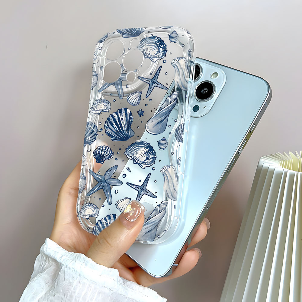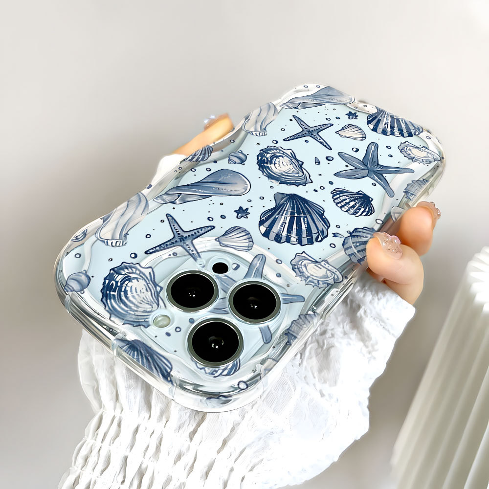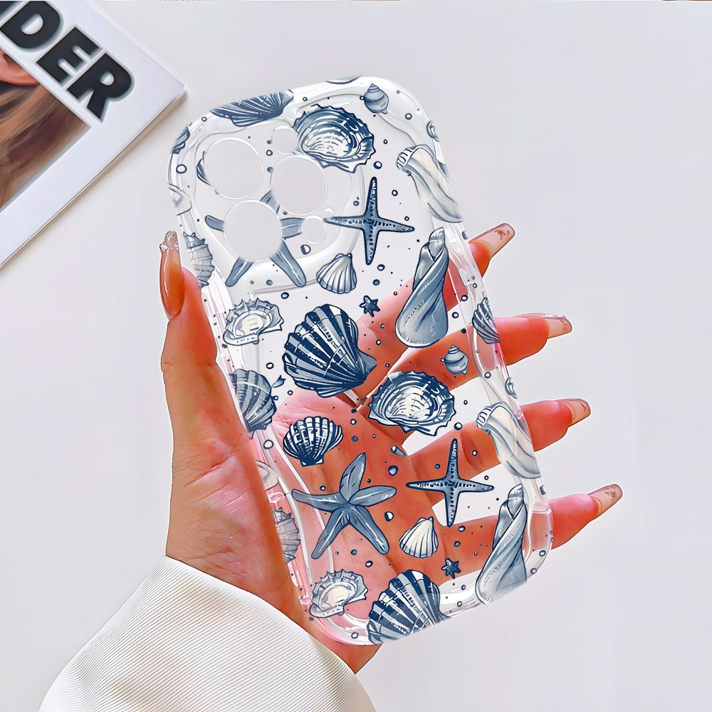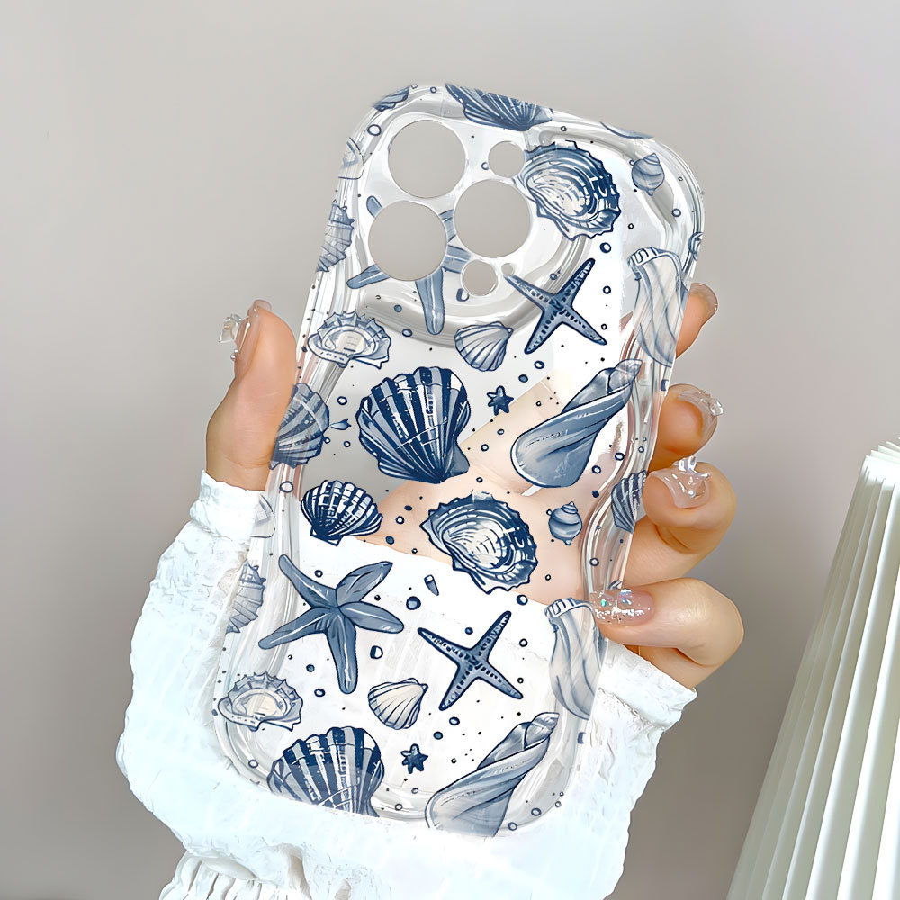 Capa Azul Concha Mar Capinha Para iPhone 17 Ar 16 15 14 Plus 13 12 11 Pro Max XR Silicone Transparente