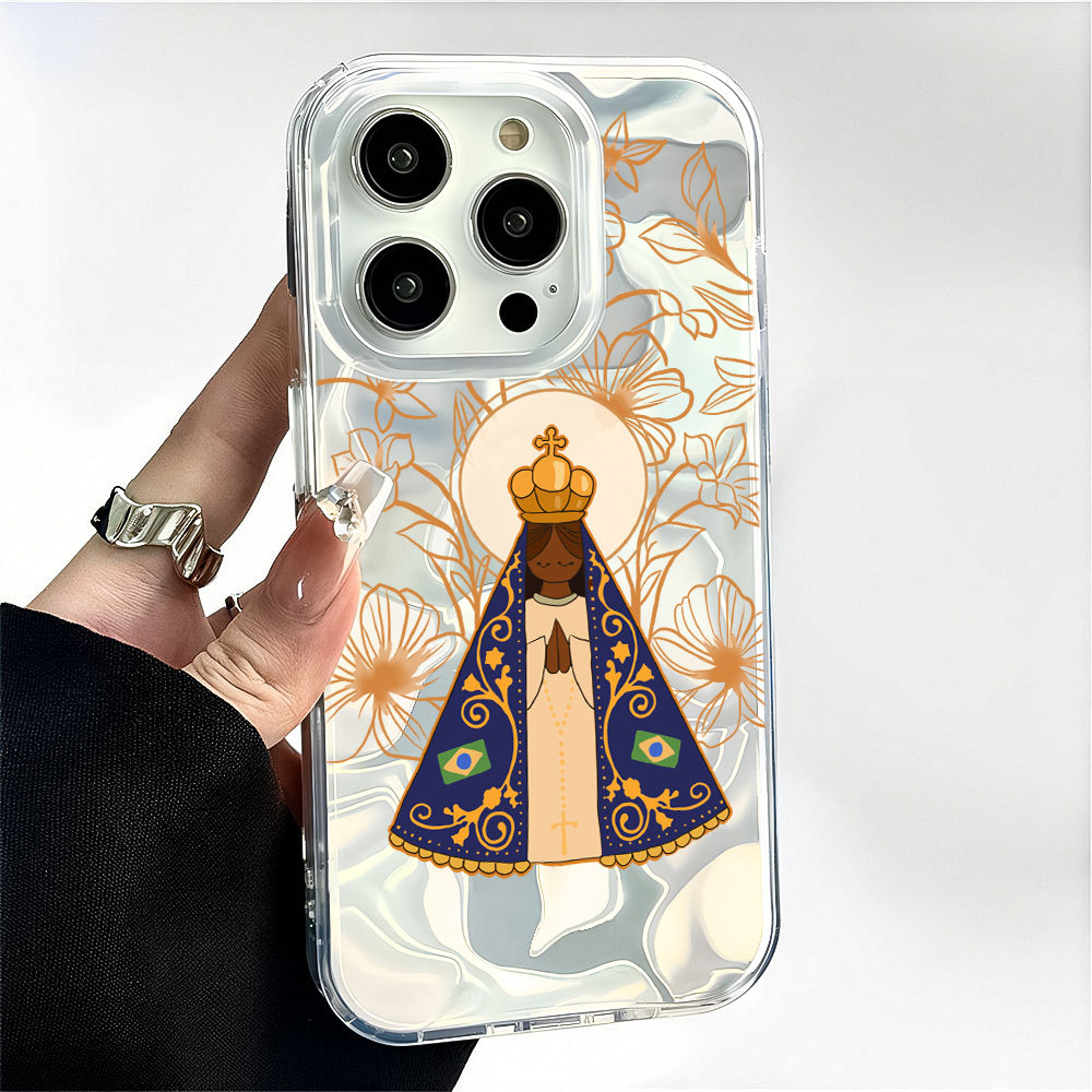 Capa Capinha Para iPhone 13 11 12 14 15 16 Plus Pro Max Nossa Senhora Gradiente Aurora Anti-Queda