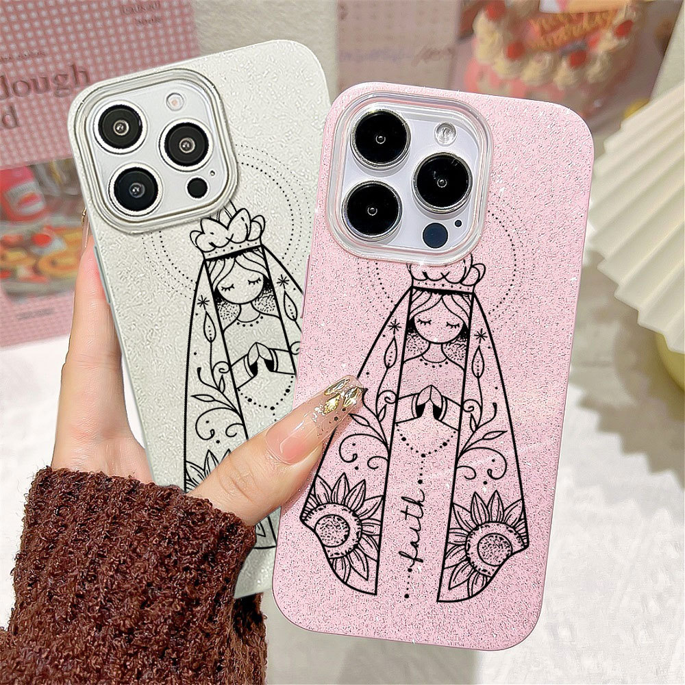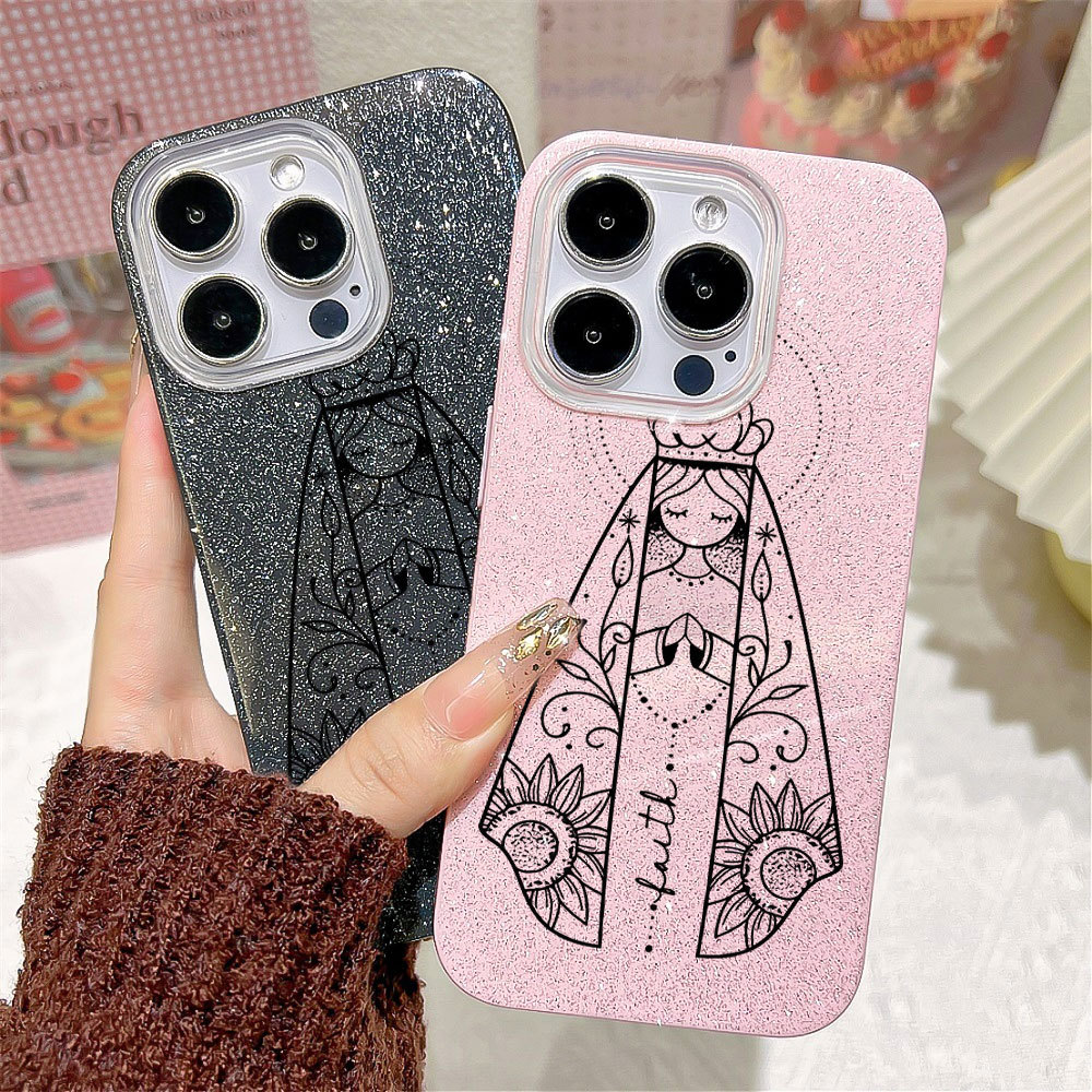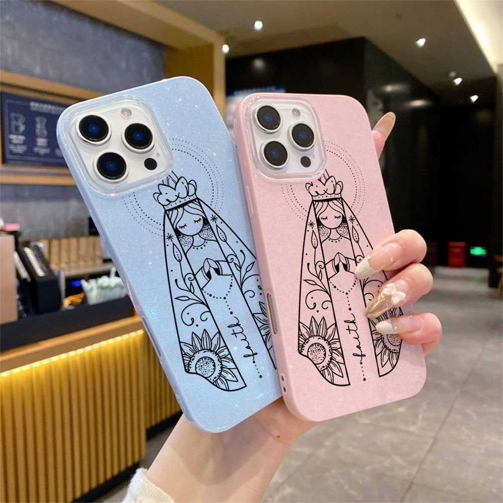 Nossa Senhora Capinha Para iPhone 17 Ar 16 15 14 Plus 13 12 11 Pro Max XR Capa Glitter Bling Anti-impacto