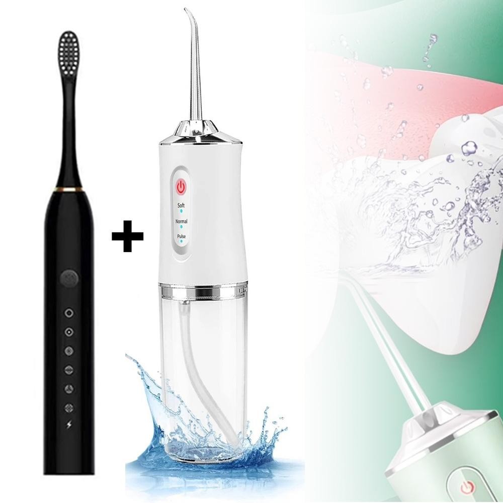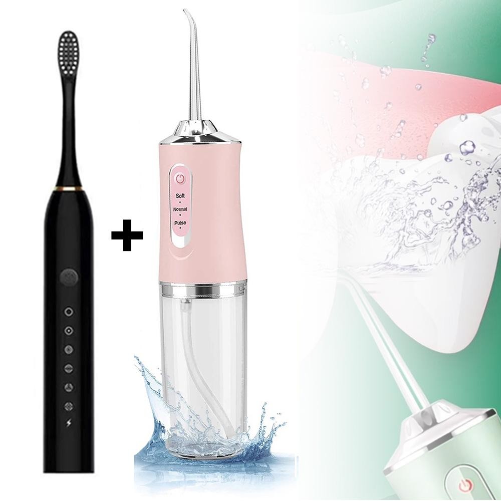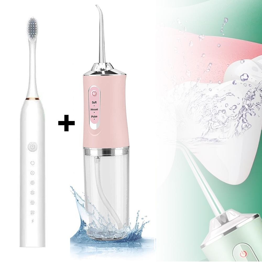 Conjunto de escova de dentes elétrica,irrigador oral recarregável,limpeza oral higiênica e portátil