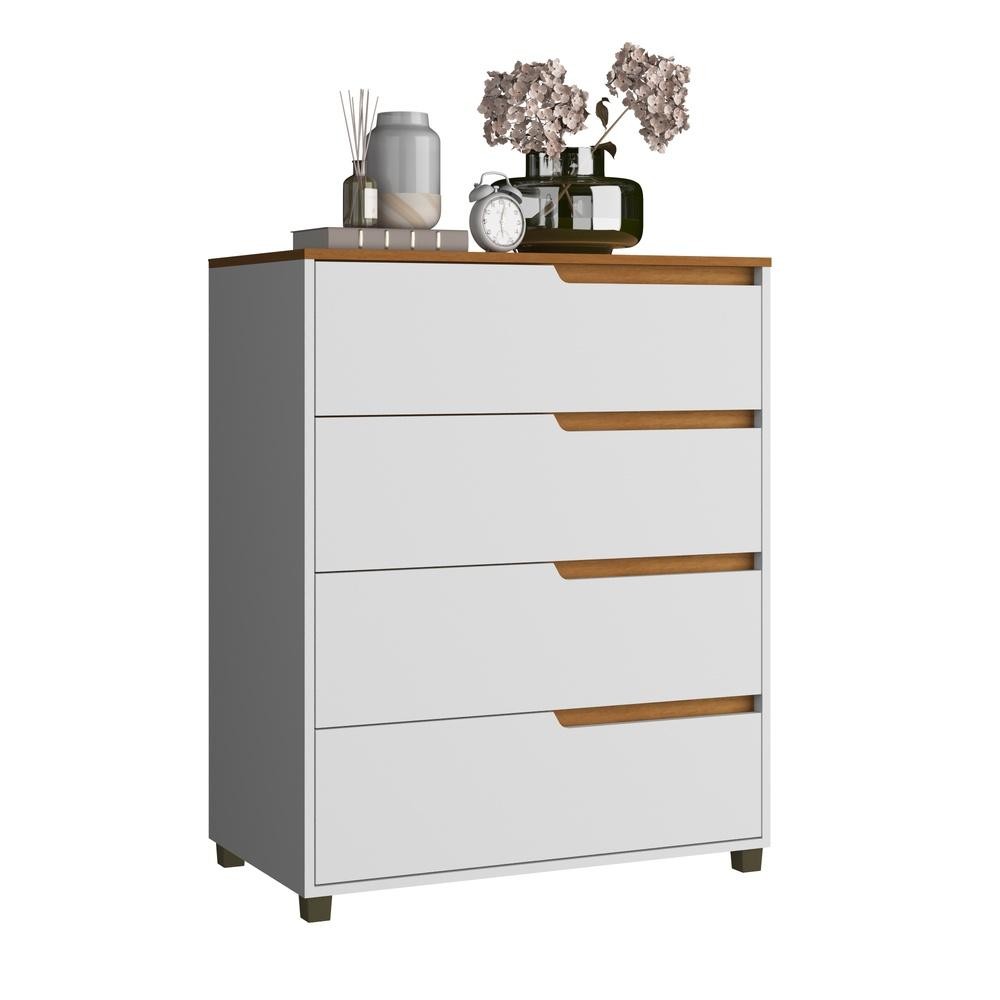 Cômoda 4 Gavetas Viena Branco/Nature MDF Casamia