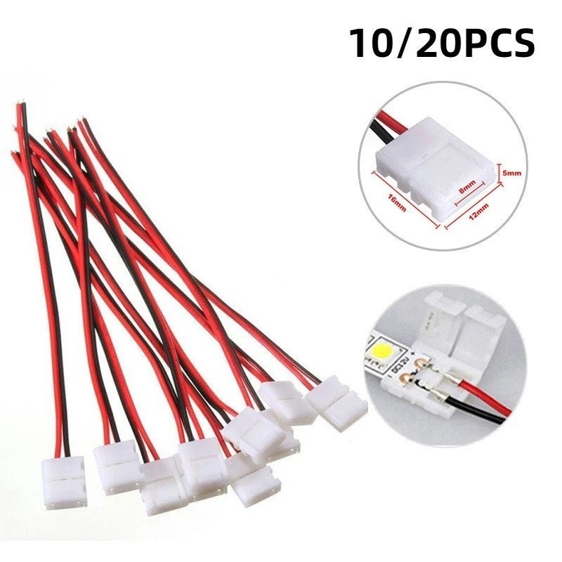 Cabo De 10/20pcs Conector De Fita LED De 2 Pinos 2835/5050 Adaptador De Cor Única Fio De Alimentação Útil De 8/10mm