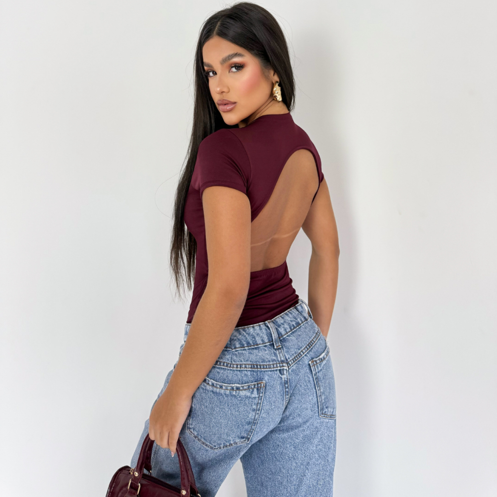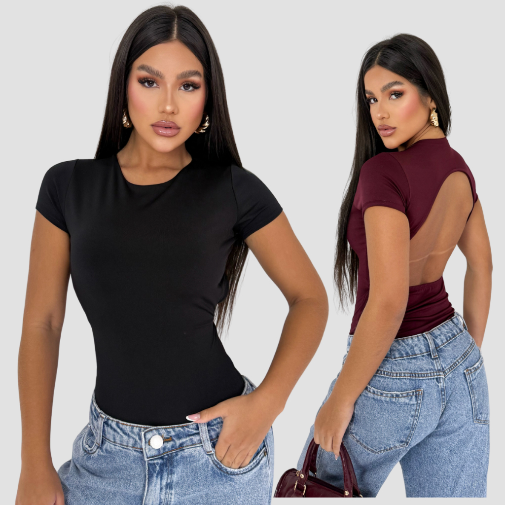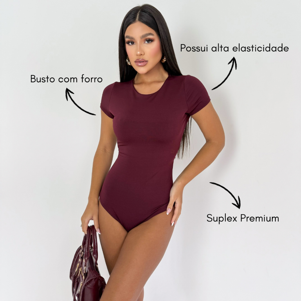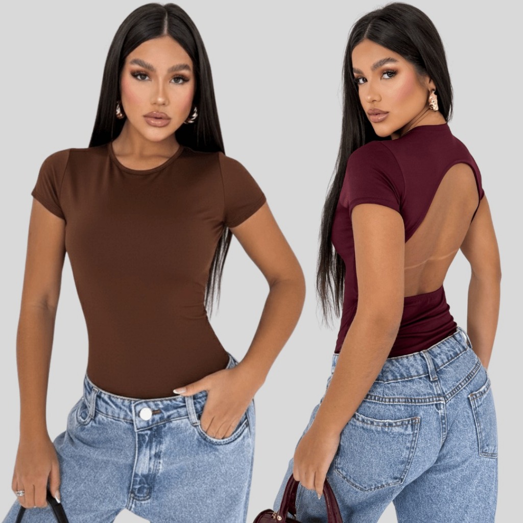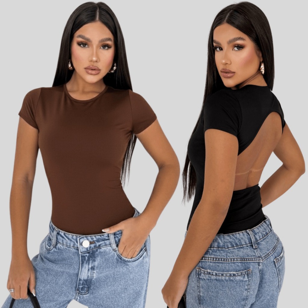 Kit 2 Body Feminino Manga Curta Costa Nua Forro Duplo Suplex