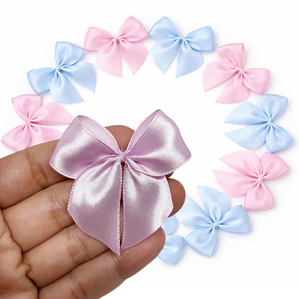 Laço Chá Revelação emCetim 20/40/100 UNIDADES Azul Rosa - nº5 - 5 cm COM FITA PARA AMARRAR