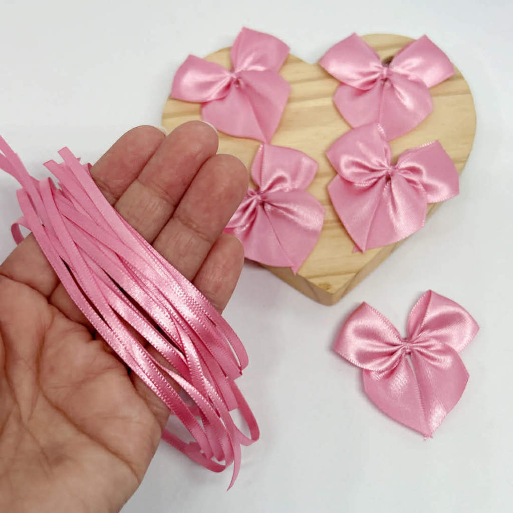 Laço Lacinho ROSA em Cetim 20/40/100 UNIDADES - nº5 - 5 cm COM FITA PARA AMARRAR