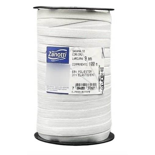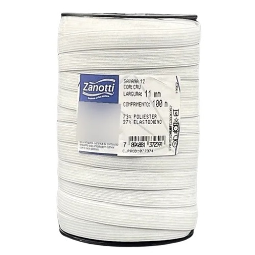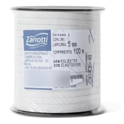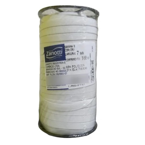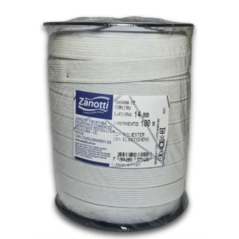 Elástico Branco. Marca ZANOTTI. Rolo Com 100 Metros.
