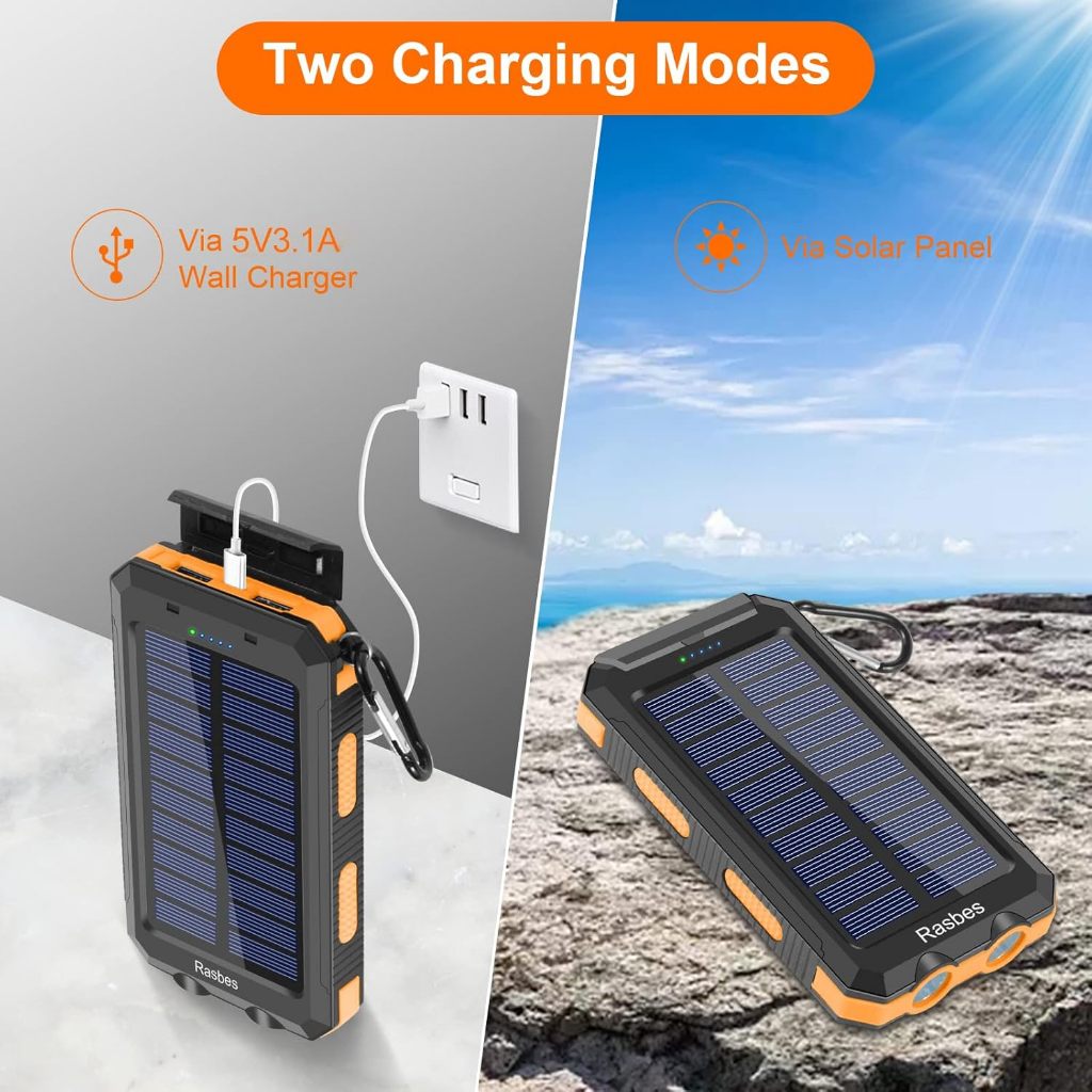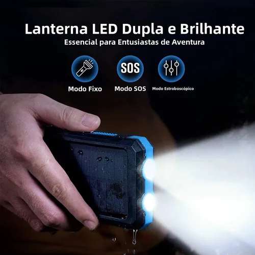 Power Bank Solar 10000mAh Carregador Portátil Painel Solar Dupla Saída USB com Lanterna ,Ideal para Viagem e Camping