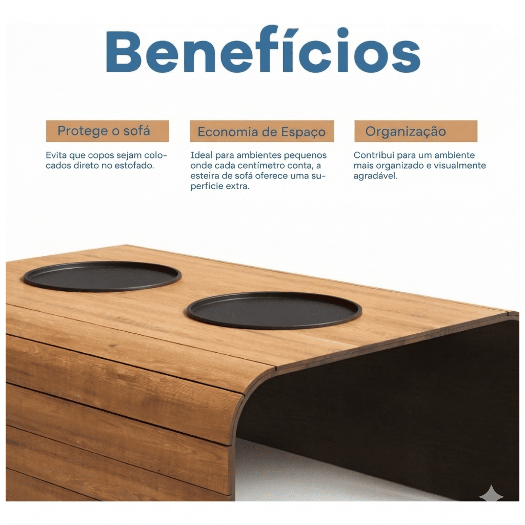 Suporte de Sofá em MDF com Porta-Copo--Versões com e sem Nichos Acabamento Premium e Modelo Liso