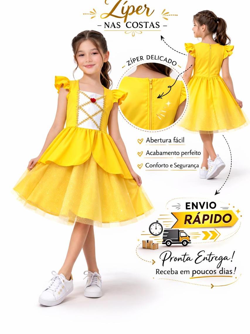 Fantasia Infantil Princesa Bela Branca de Neve Elsa Ana (Frozen) Luxo Festa Tam 2 a 10 Anos