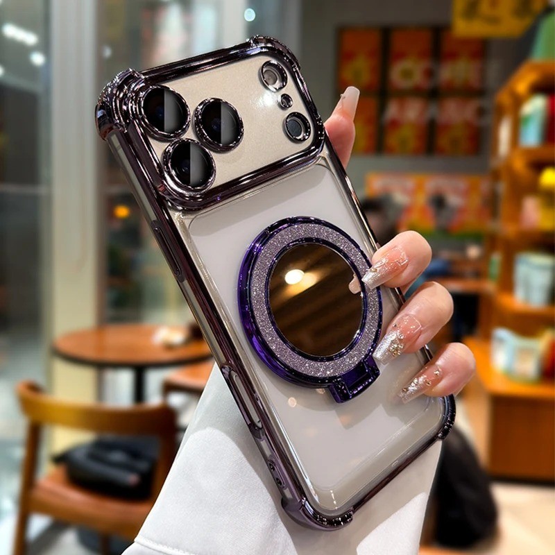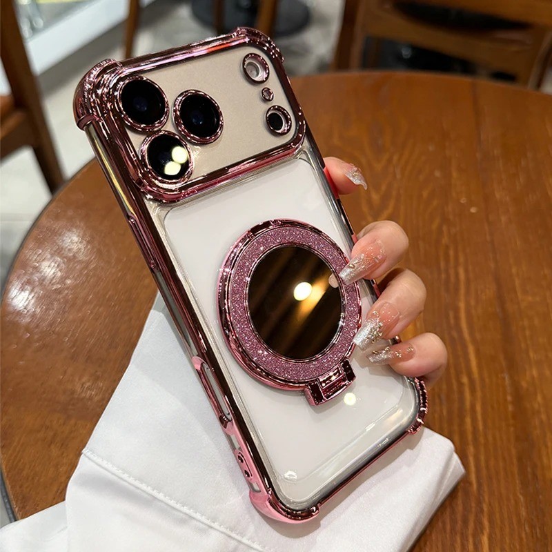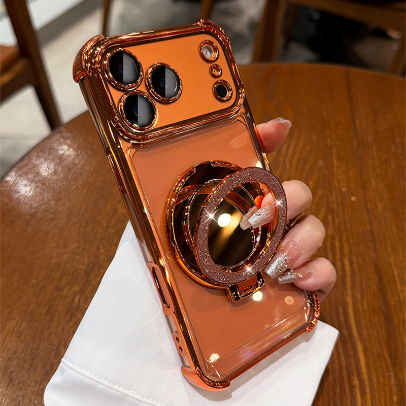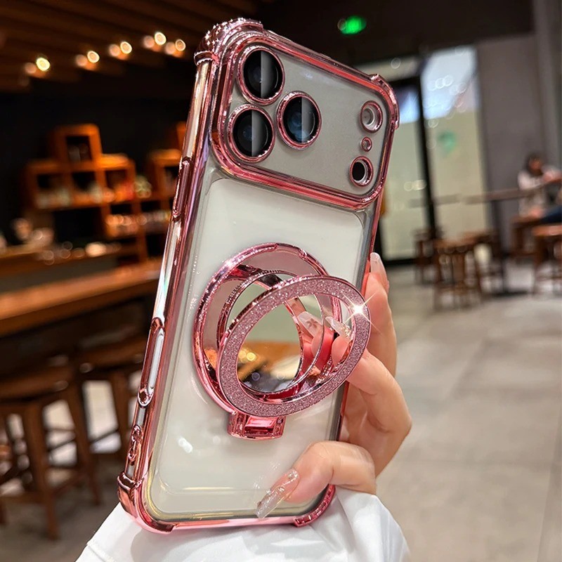 Para iPhone 17 Pro Max Chapeamento Espelho Suporte Magnético Caso De Telefone 11 12 13 14 15 16 Plus Capa De Ar