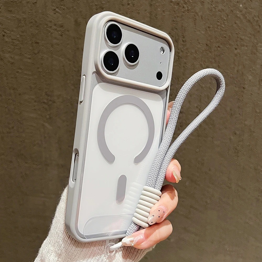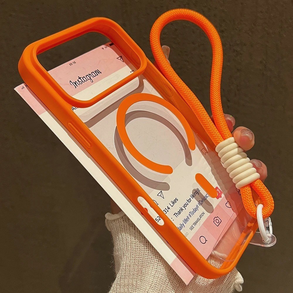 Luxo Com Cordão Claro Caso De Telefone Para iPhone 17 16 15 14 13 12 11 Pro Max 16 Plus 16E 17 Ar Magnético Casos Capa
