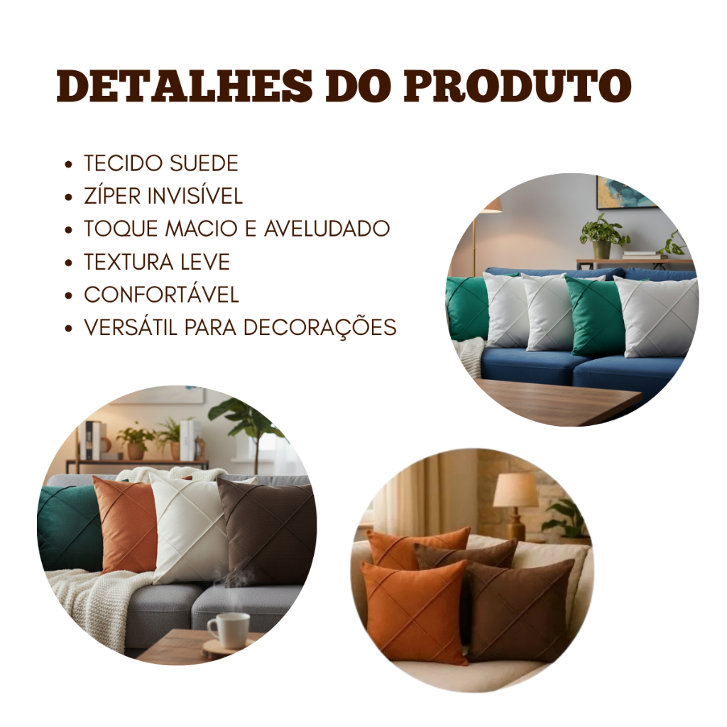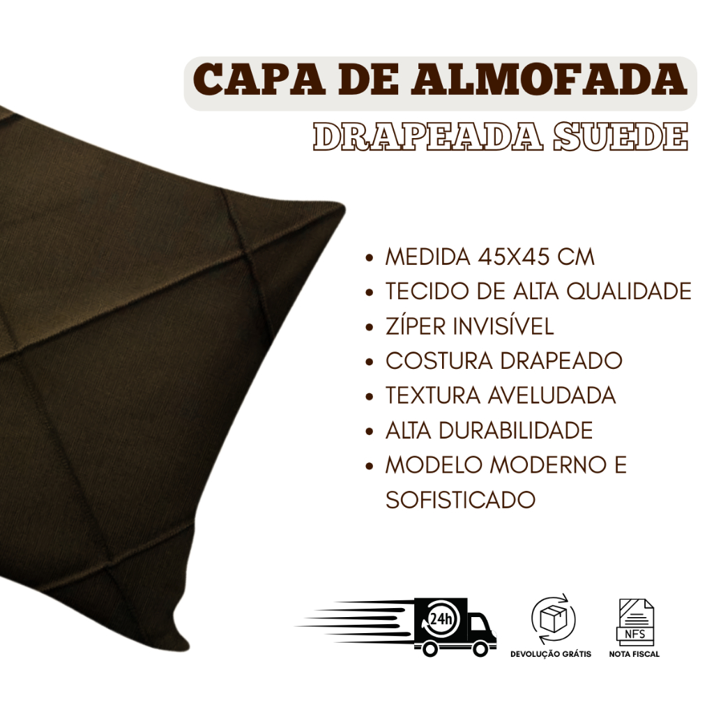 Capa de Almofada 45x45cm Suede Drapeada para Sala Quarto Sofa Decoracao Uso Residencial Interno