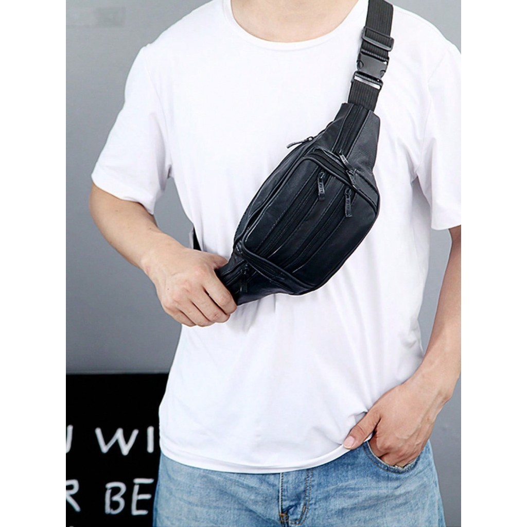 Pochete Feita De Couro Legítimo Espaçosa Resistente Unissex