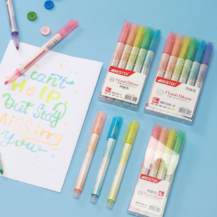 (2 Pacote)Kit 4/5/6 Marcadores Texto NEON Cores Vivas - À Prova de Sangração