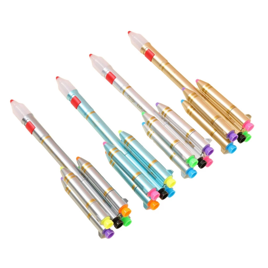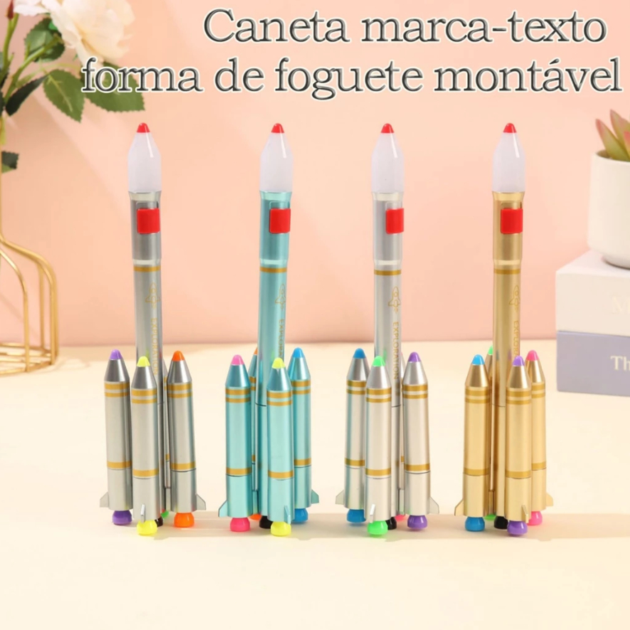 4 Cores Marca Texto Formato De Foguete Removível Montagem pastéis/fluorescência/material escolar/mini lembrancinha