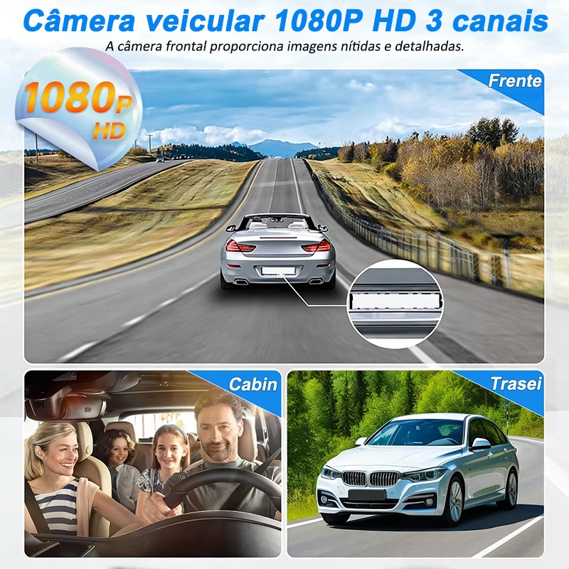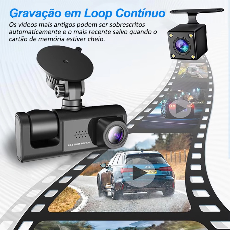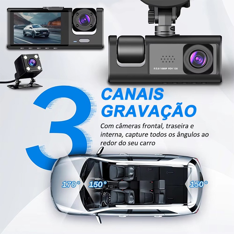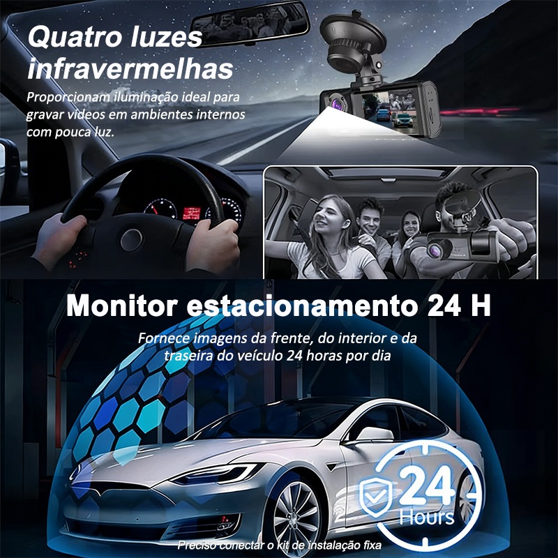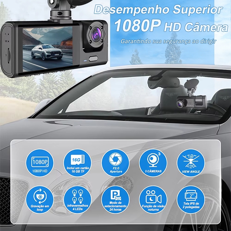 Câmera Traço Para Carro 1080P HD Dash Cam 3 Câmera 24H Monitor de Estacionamento dvr 360° Com 16G TF