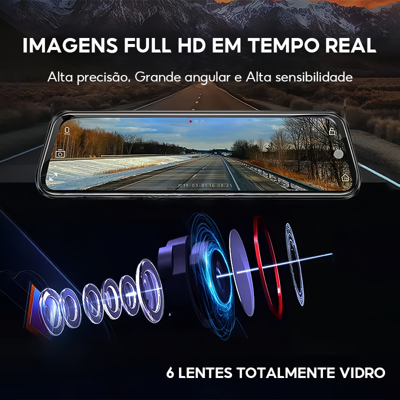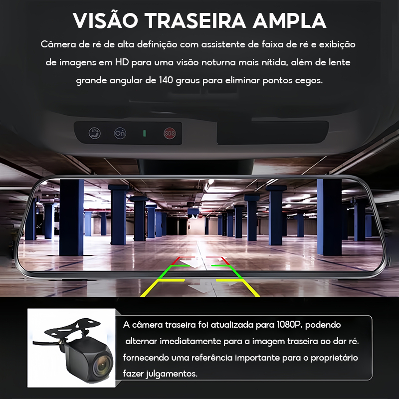 Câmera Espelho 10 polegada Retrovisor Dash Cam para Frente e Trás Ré/Frontal 1080p Infravermelho