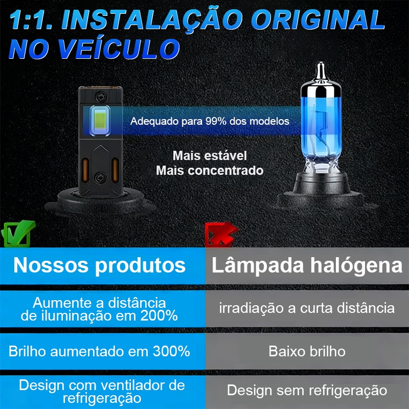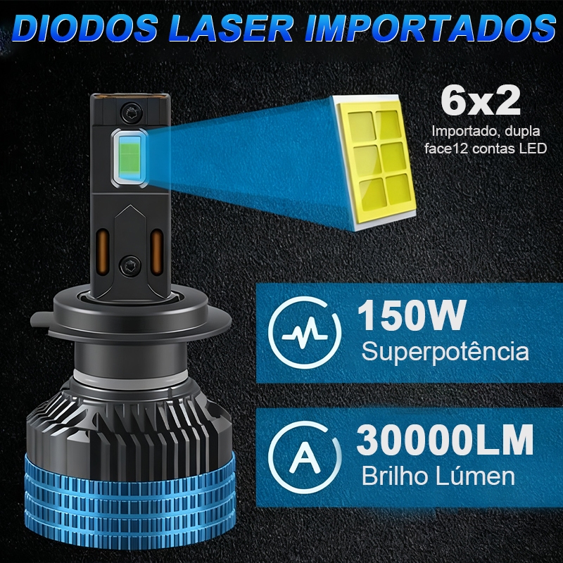 Par de Super Led Lâmpadas 30000LM Brilho Lúmen,150W 6000K, H1 H3 H4 H7 H11 9005 9006,7 estilos