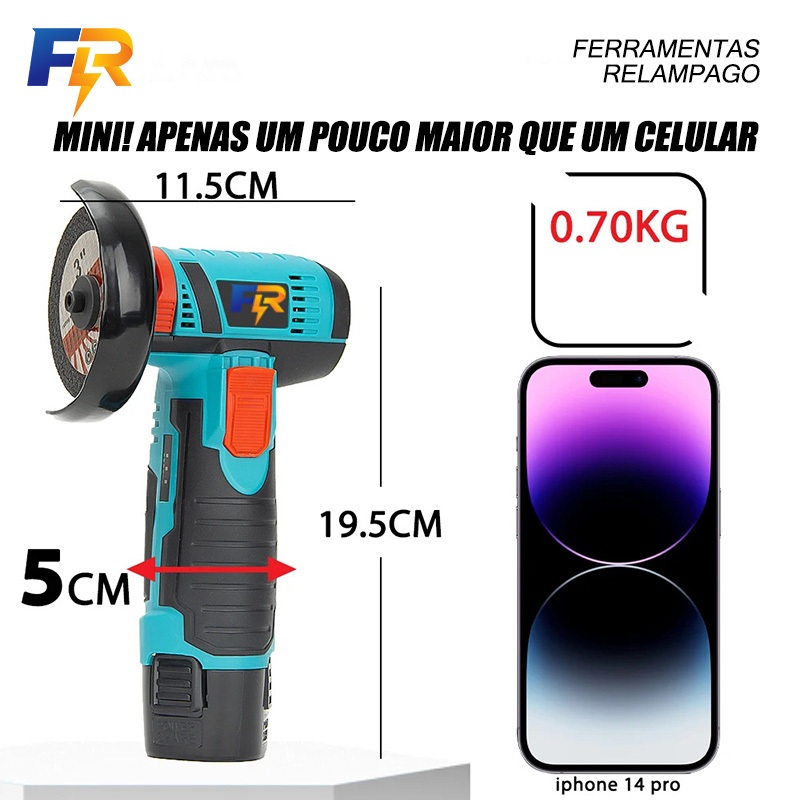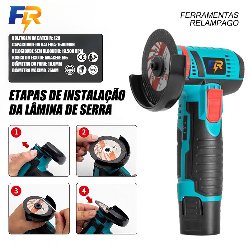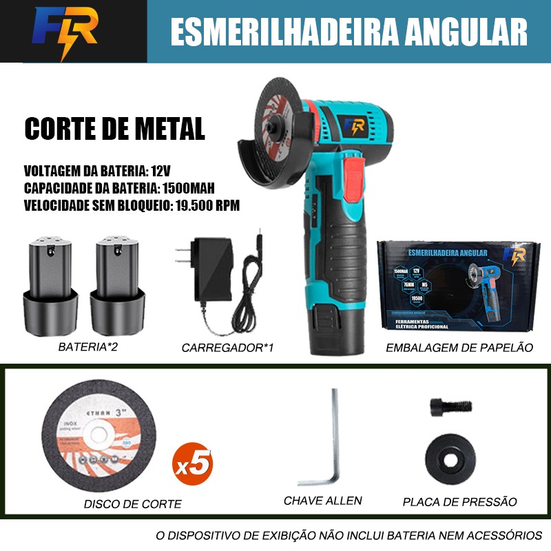 Mini Esmerilhadeira Angular Sem Fio 12V com 2 Baterias e 5 Discos