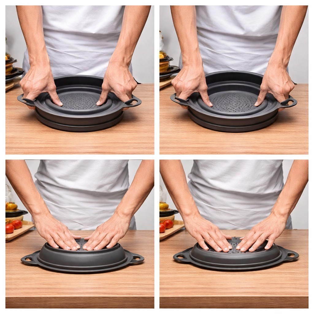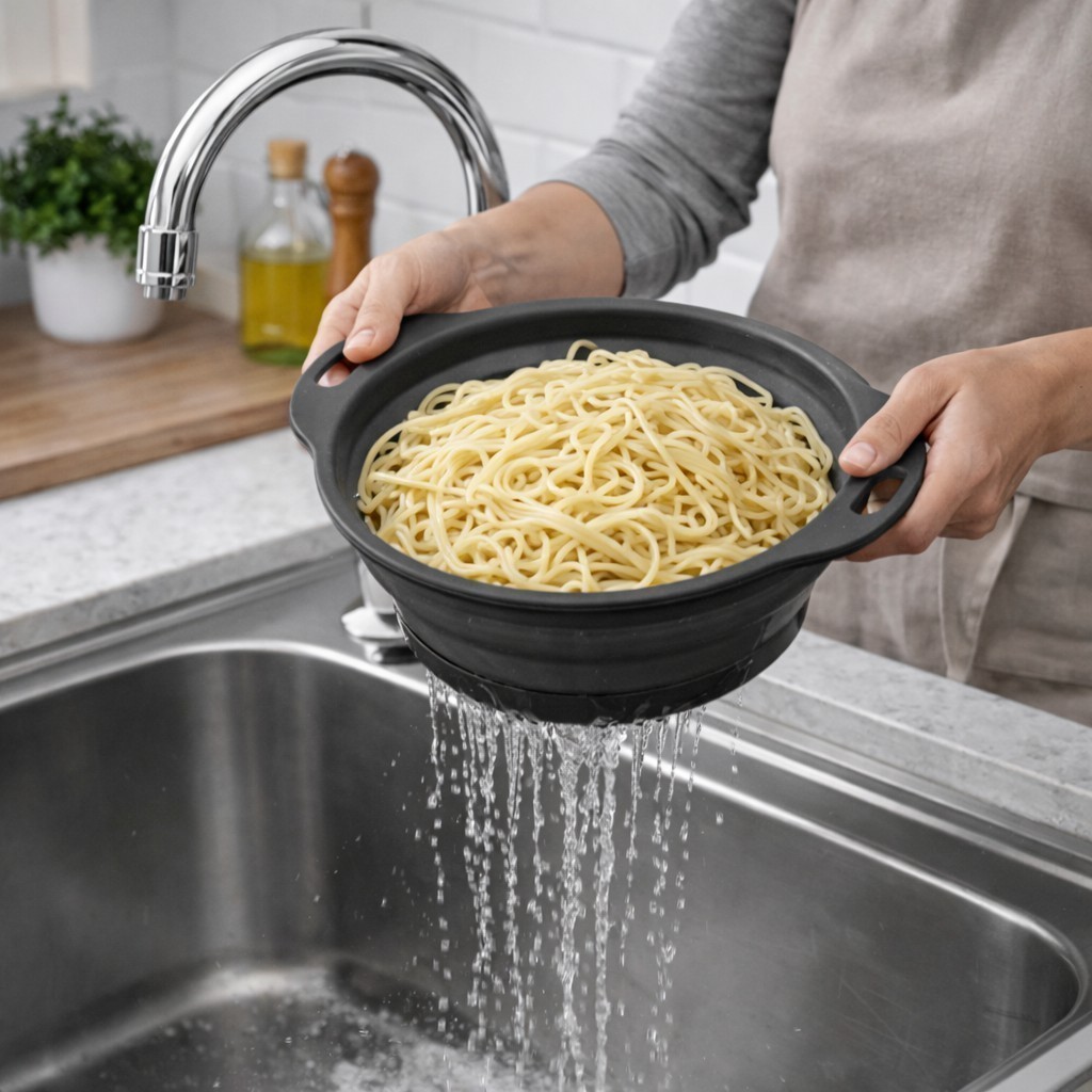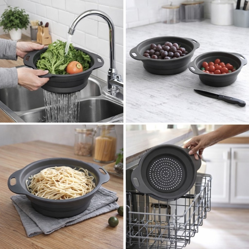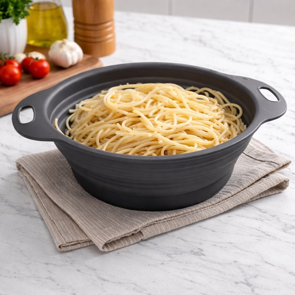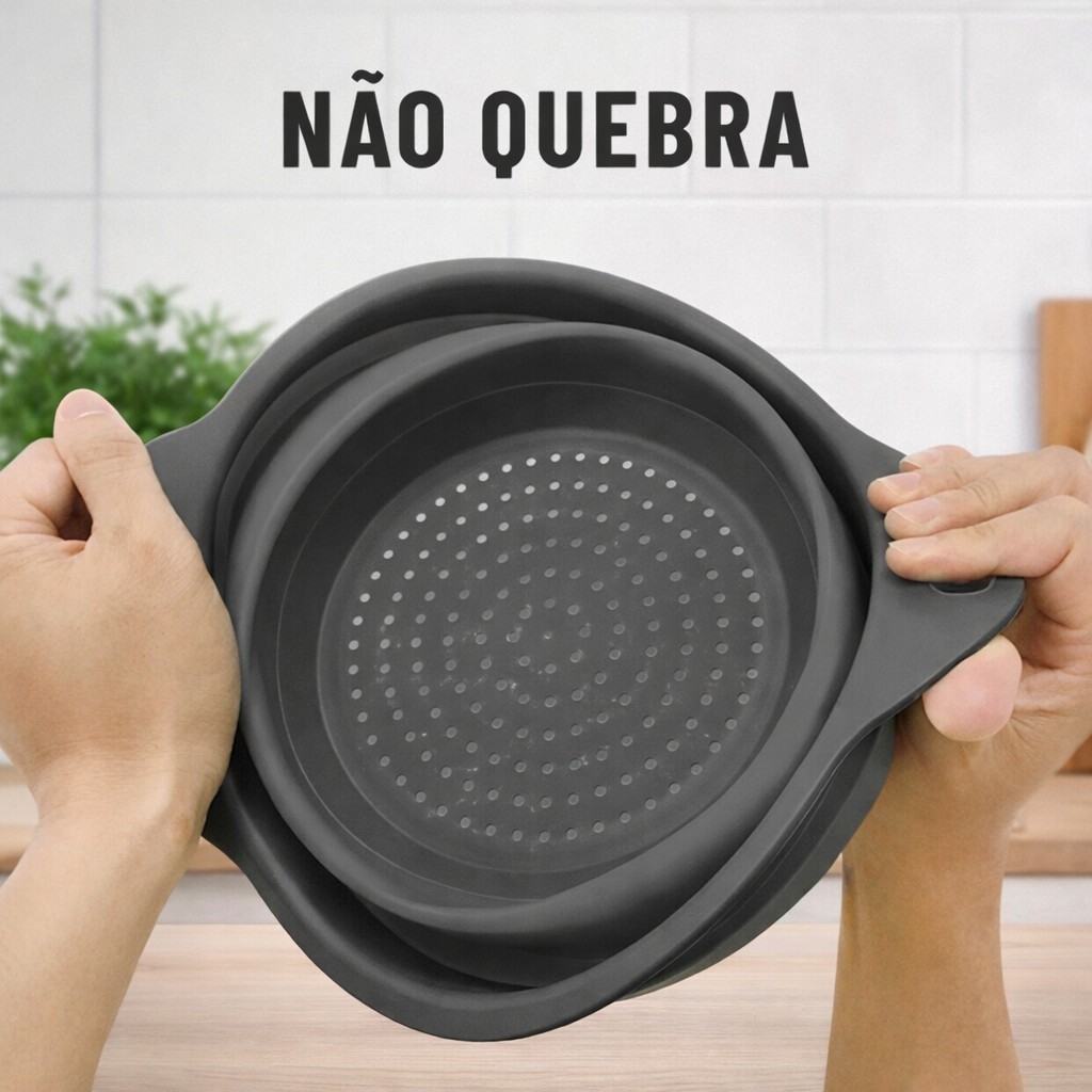 Escorredor de Macarrão Arroz Salada Redondo Frutas Alimentos Retrátil Silicone Borracha Dobravel