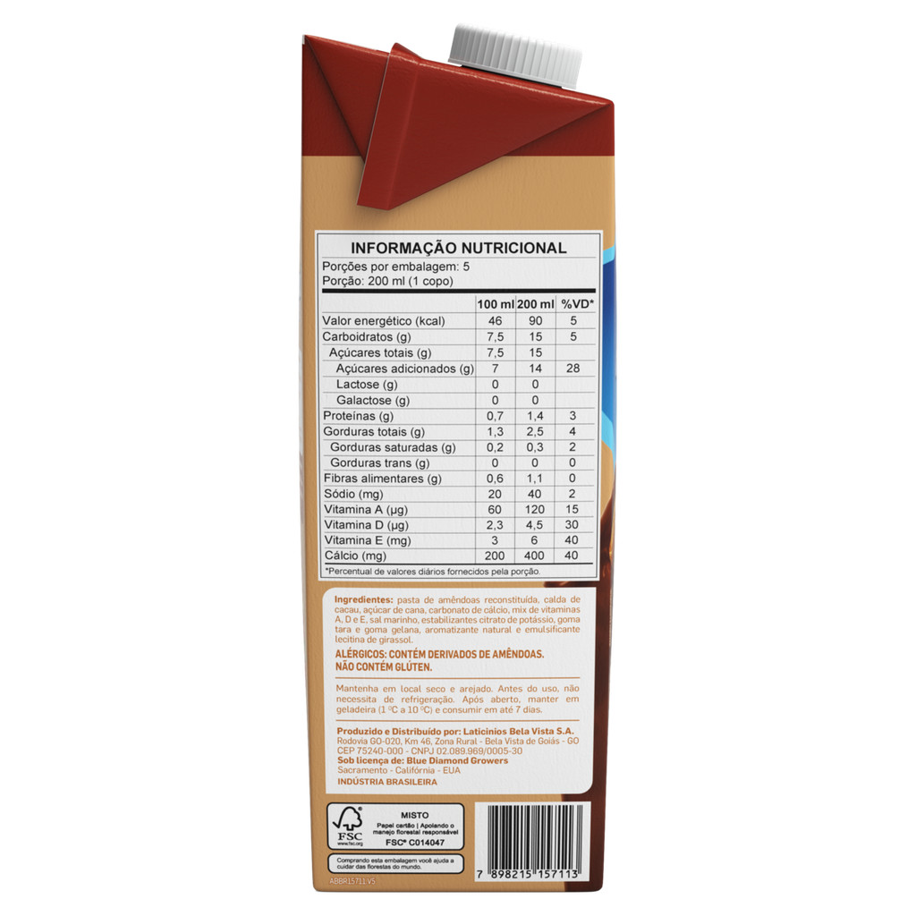 Bebida Vegetal De Amêndoas Chocolate Almond Breeze 1l Kit 12