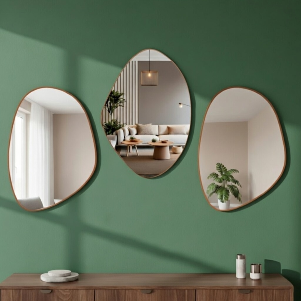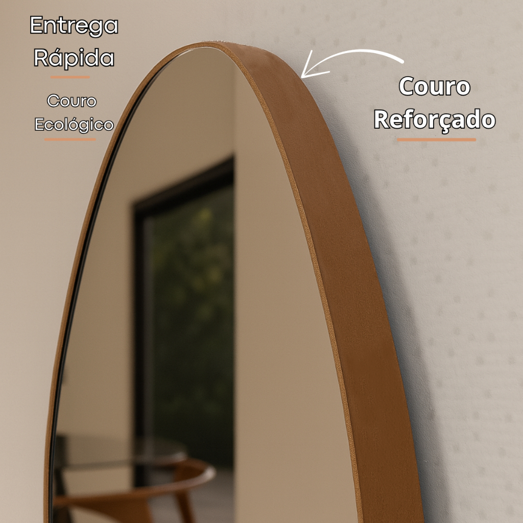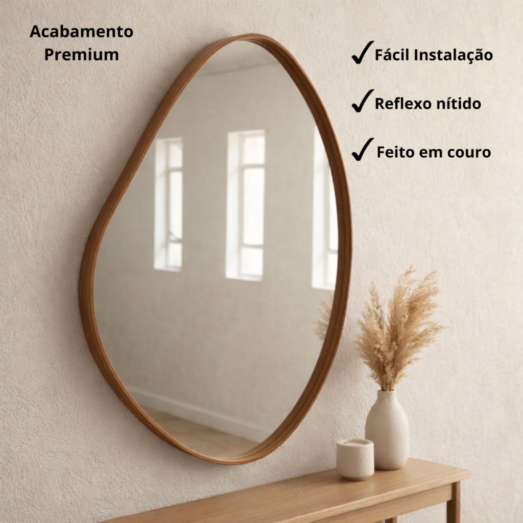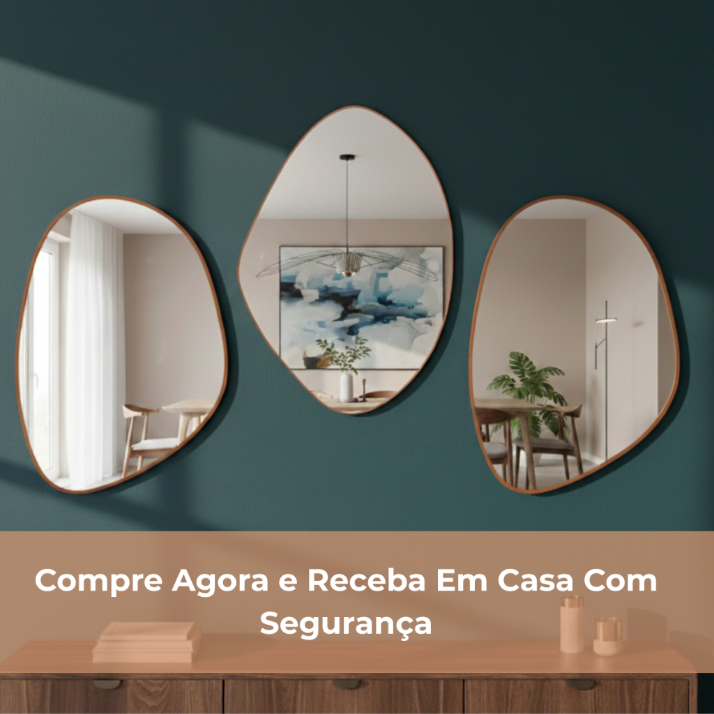 Kit 3 Espelhos Orgânicos 60x40 Decorativos Composição Mosaico Moldura em Couro Caramelo C/ Suporte