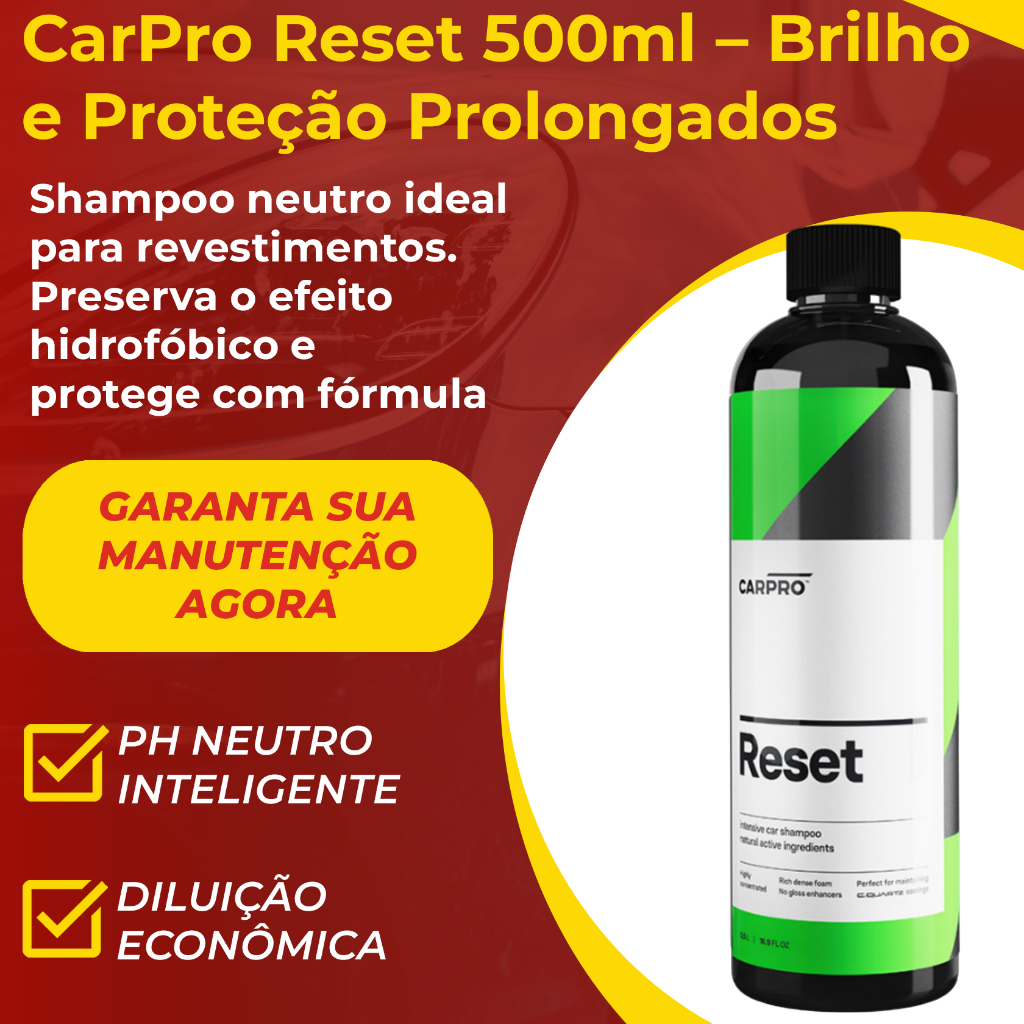 CarPro Reset 500ml | Shampoo p/ Coatings pH7 | 1:500 | Restaura Repelência | Biodegradável Original