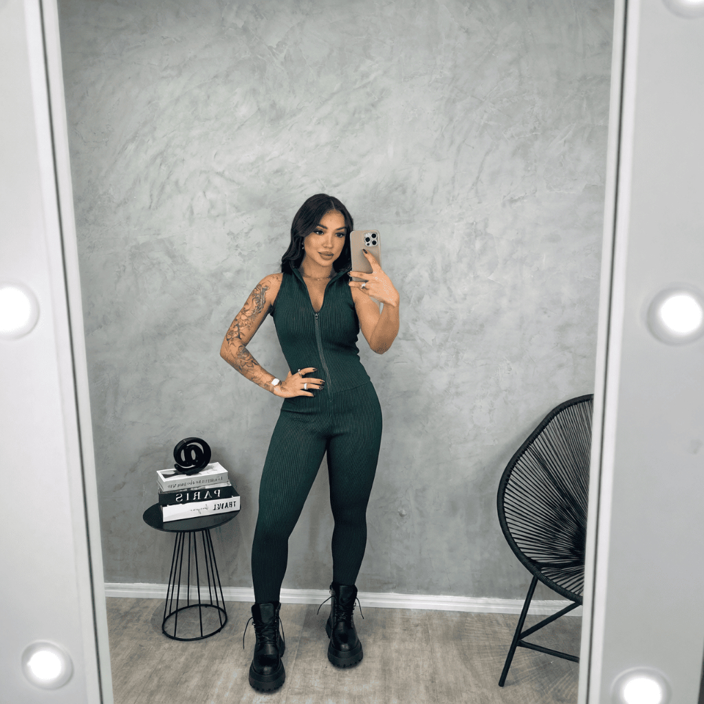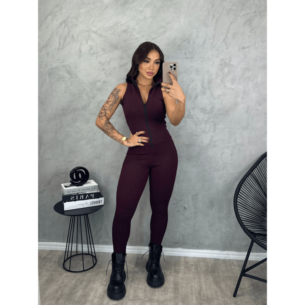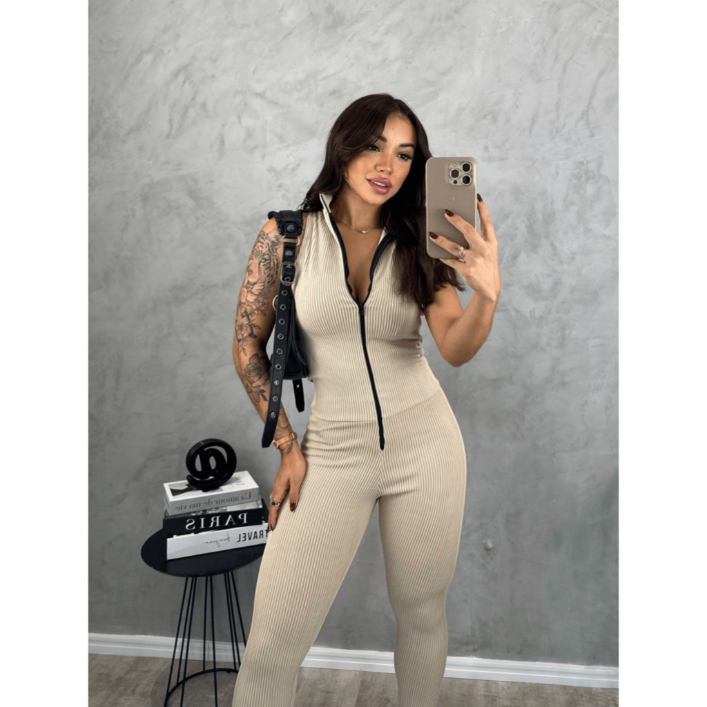 Macacão Feminino Regata Com Zíper Justo Canelado 3D TENDENCIAS PREMIUM