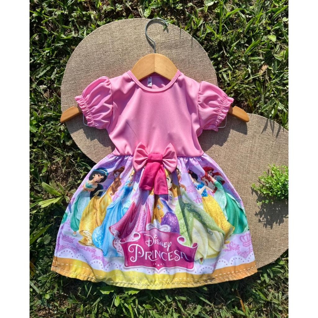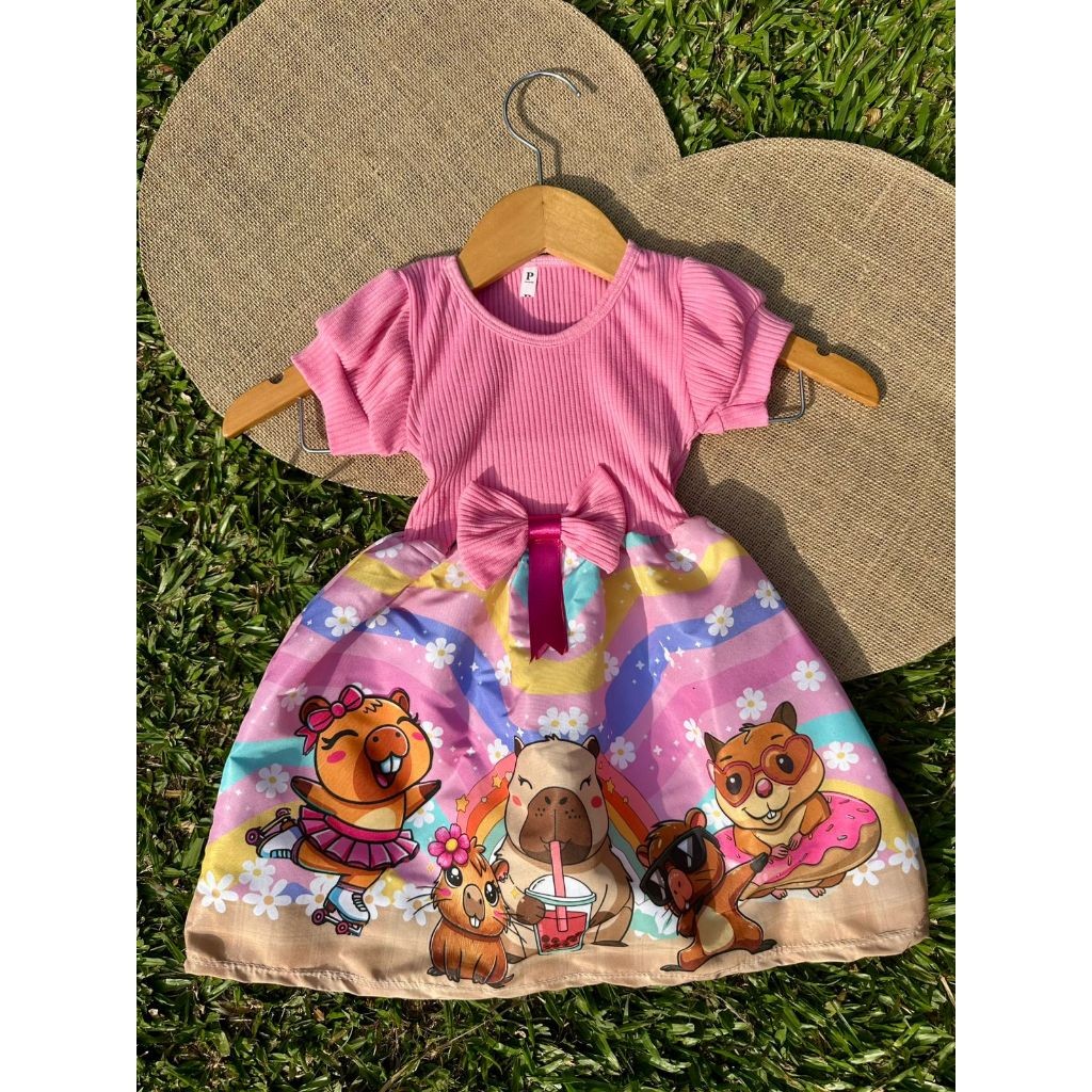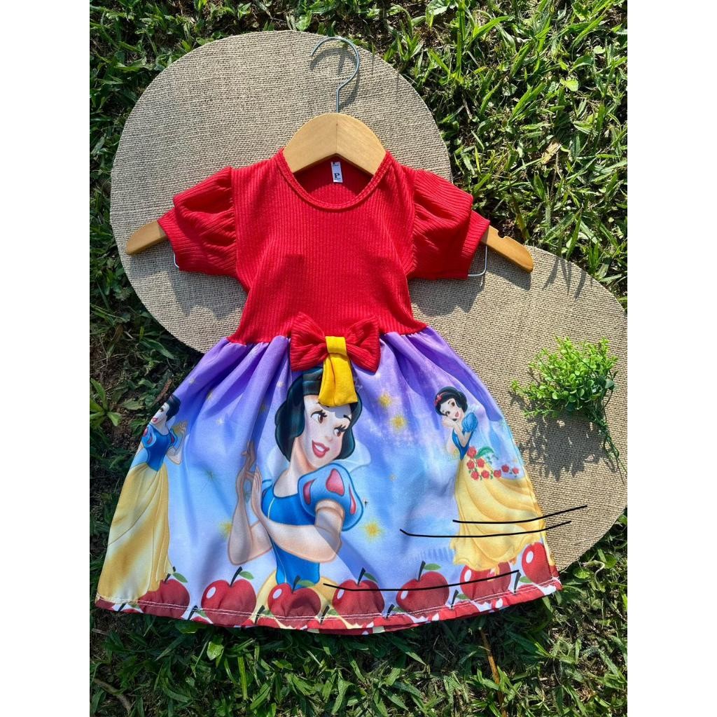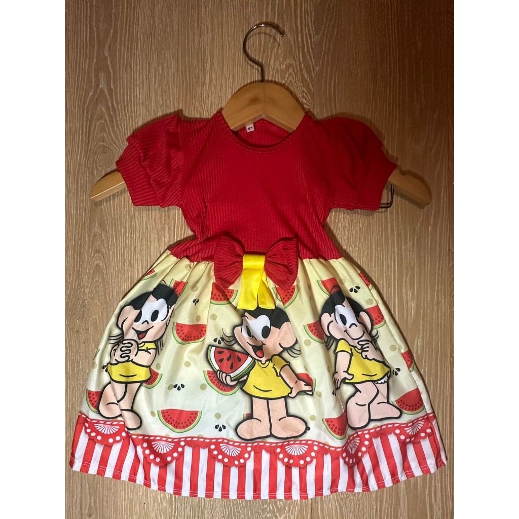 Vestido Festa Casual Manga Curta Ribana Canelado Infantil Personagens