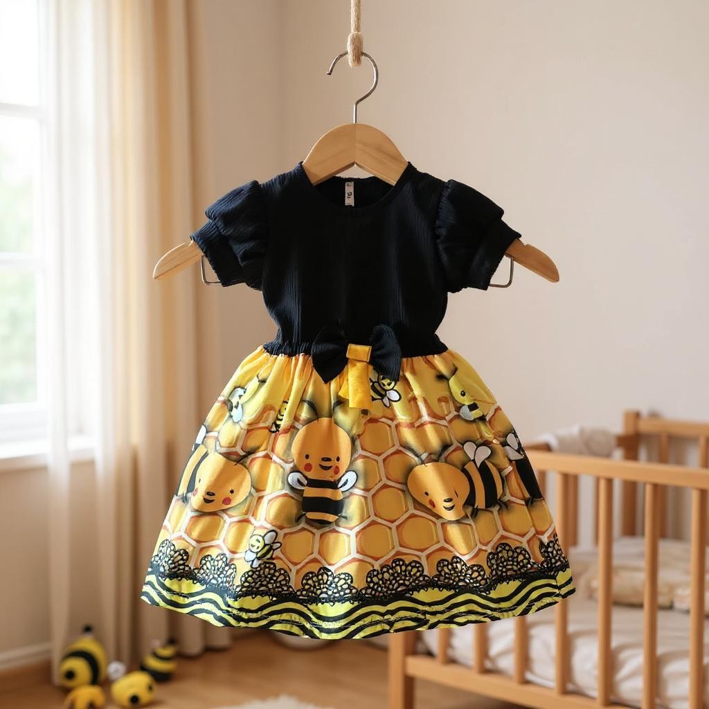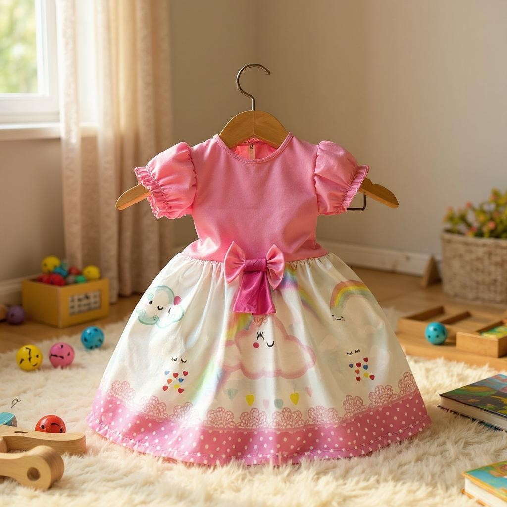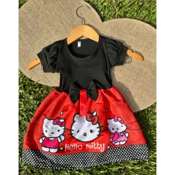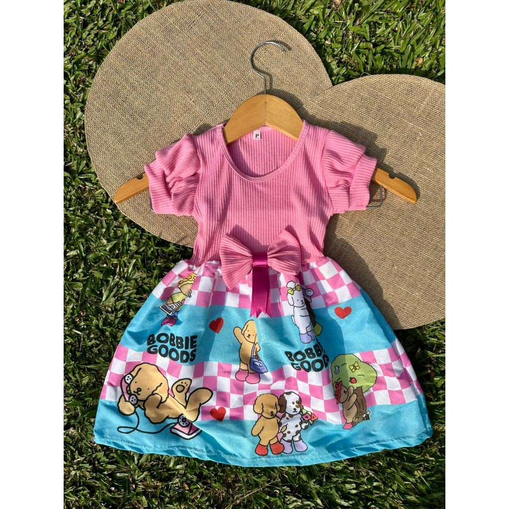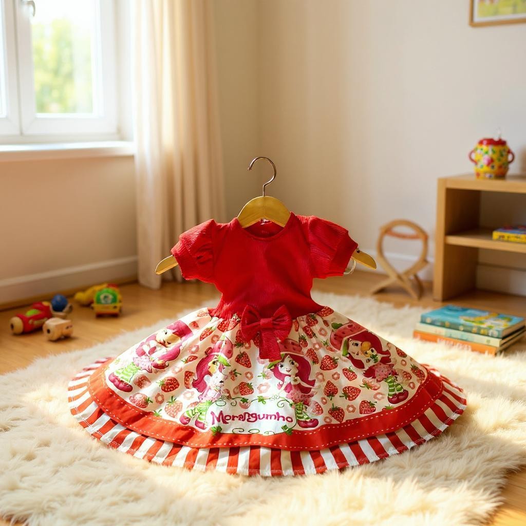 Vestido Festa Casual Manga Curta Ribana Canelado Infantil Personagens