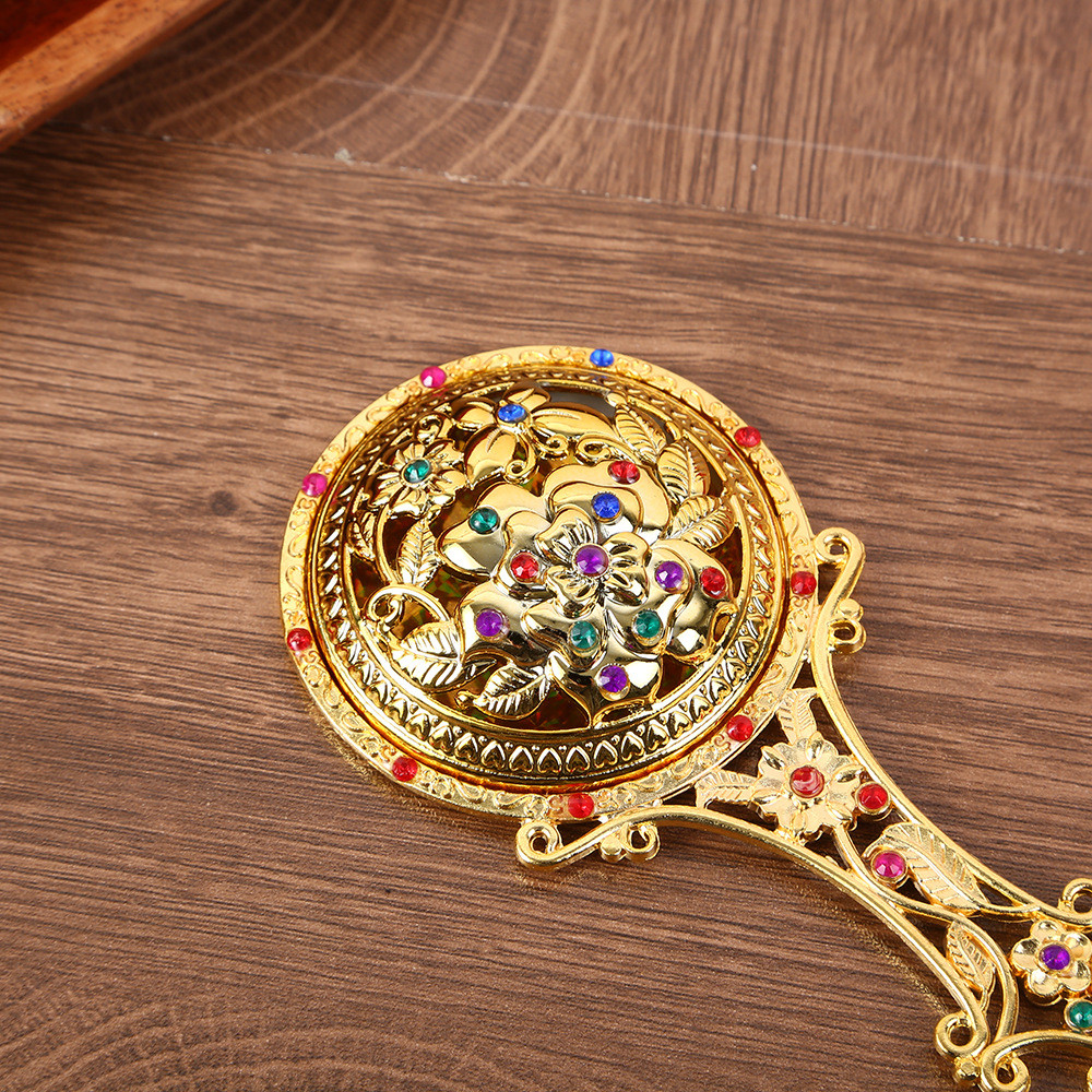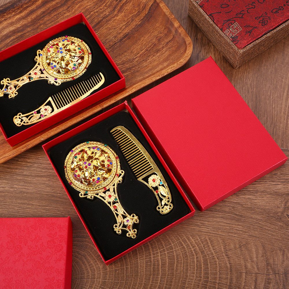 Conjunto de Espelho e Pente com Cabo de Design Oco Dourado