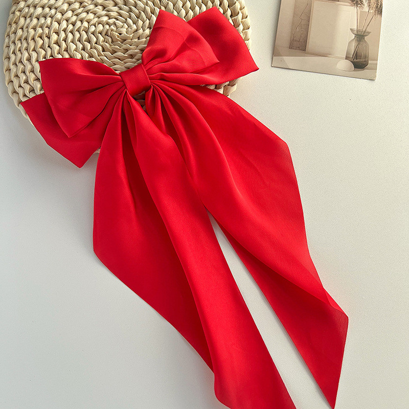 Fita de Chiffon de cetim de cor sólida grande arco grampo de cabelo acessórios para cabelo de baile