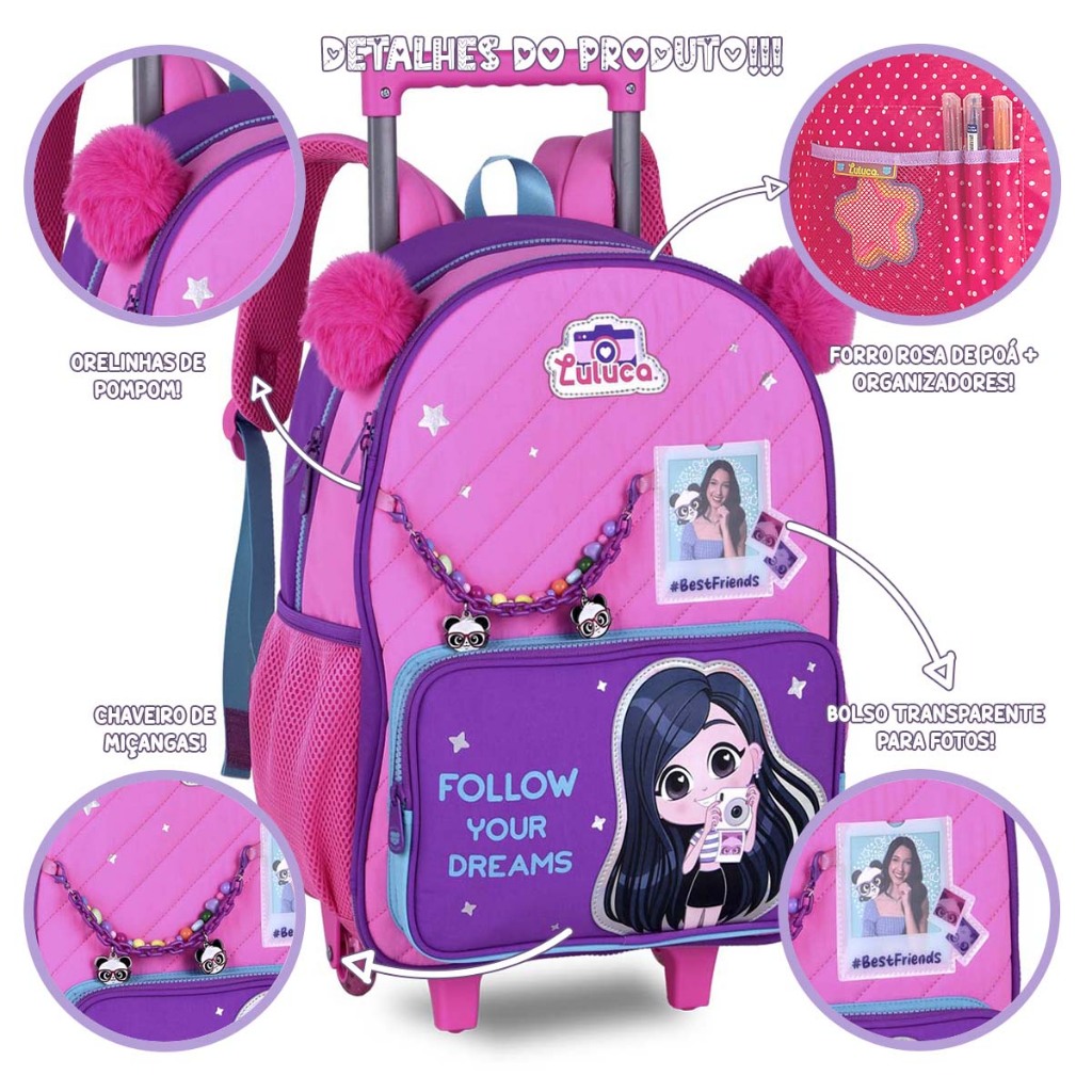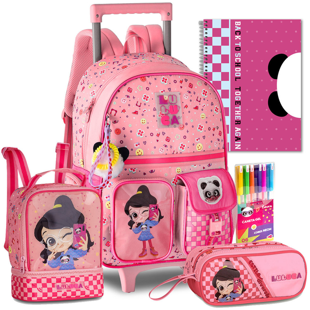 Kit Mochila Luluca Infantil Rodinha Carrinho Lançamento Brinde