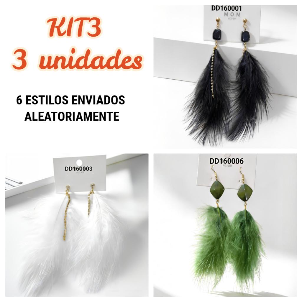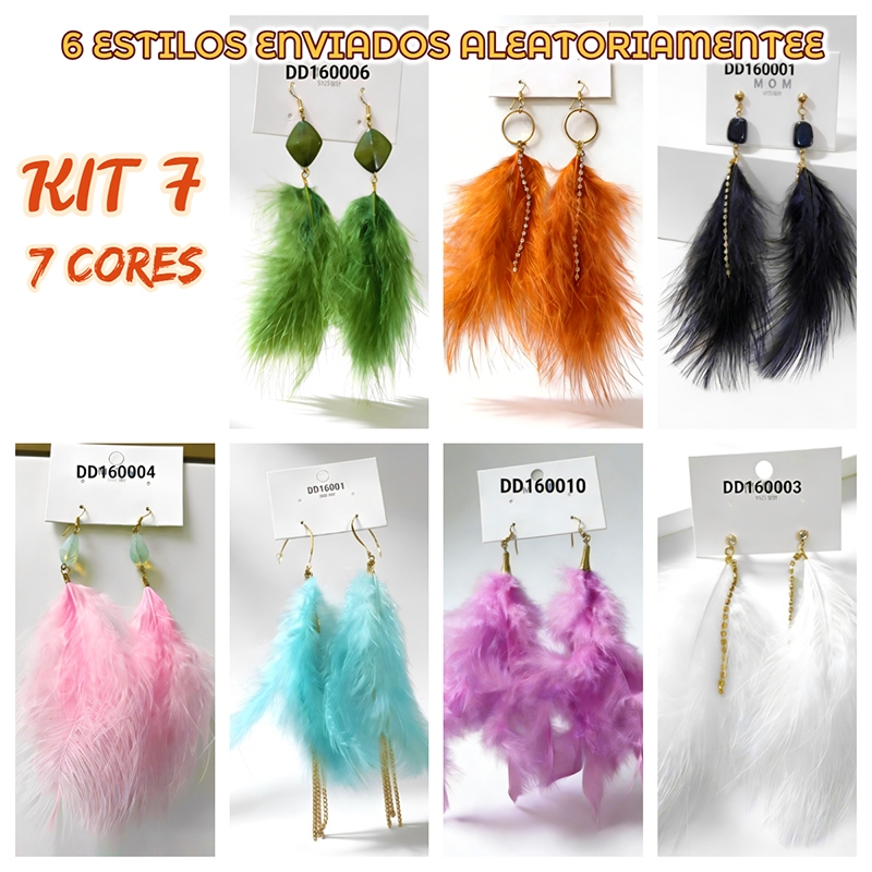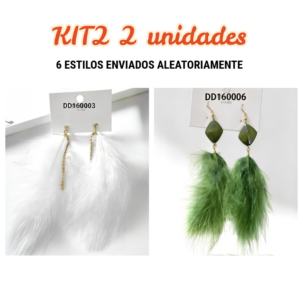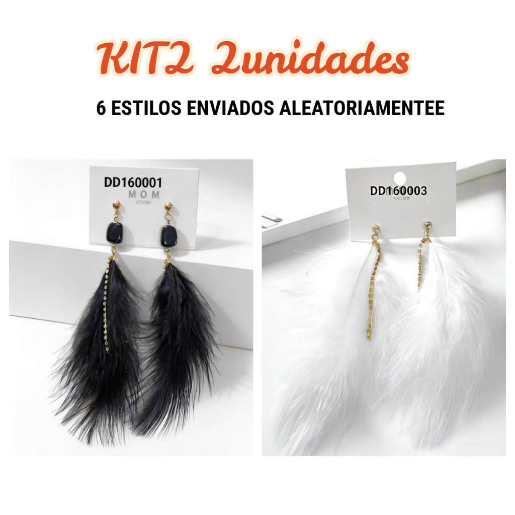 KIT2 Brinco de Penas Longo Carnaval e Festa Noturna Design Dramático e Brilhante