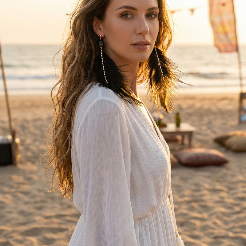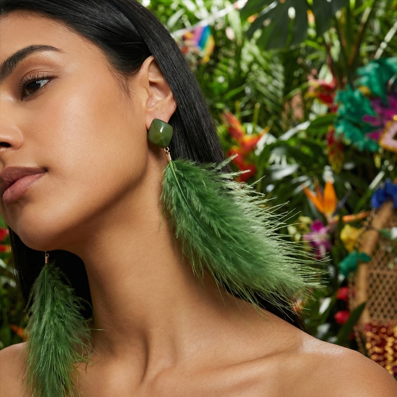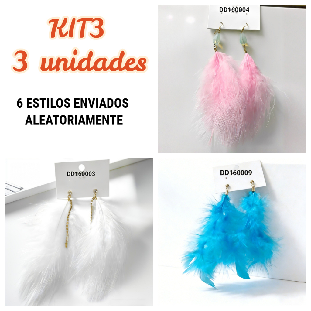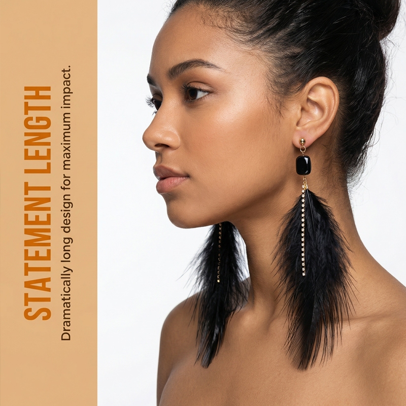 KIT2 Brinco de Penas Longo Carnaval e Festa Noturna Design Dramático e Brilhante