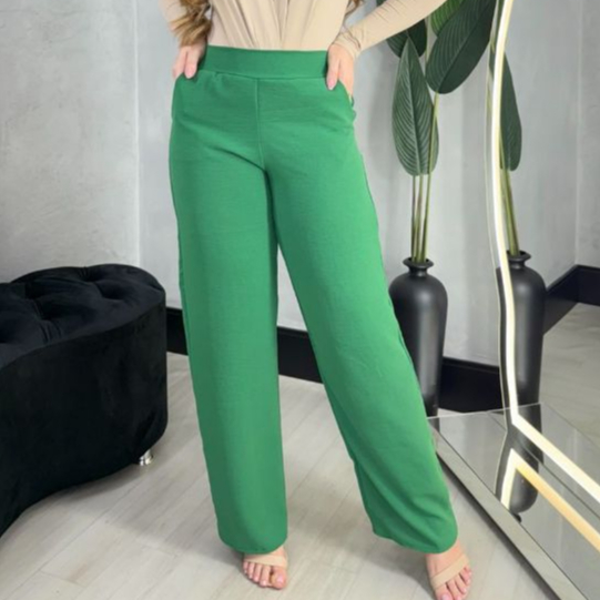 calça feminina plus size pantalona social Wide Leg Duna Tendência Lisa forrada