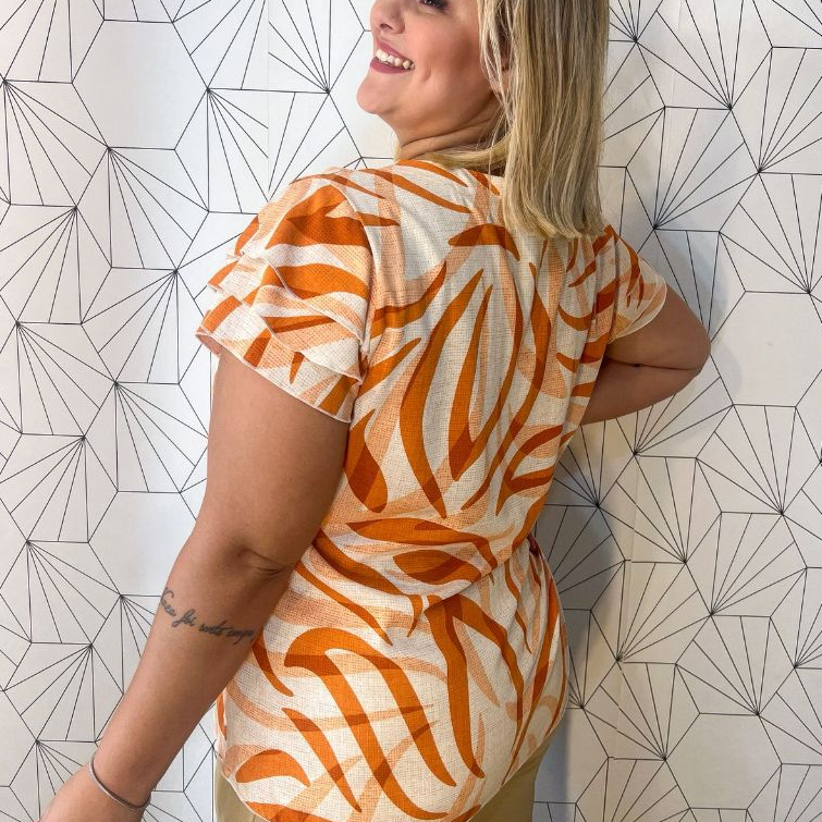blusa feminina plus size elegante manga curta verão estampada