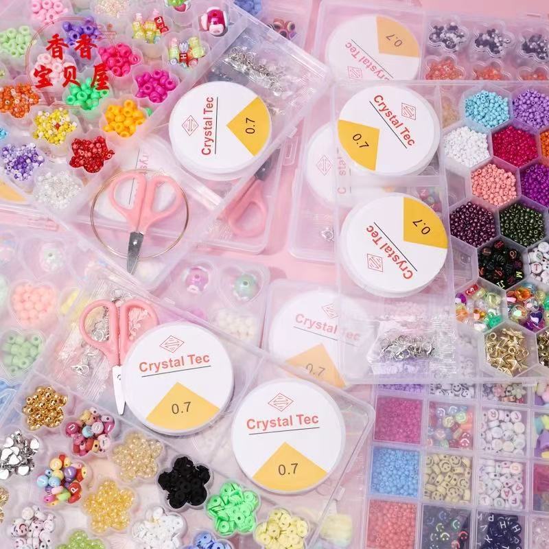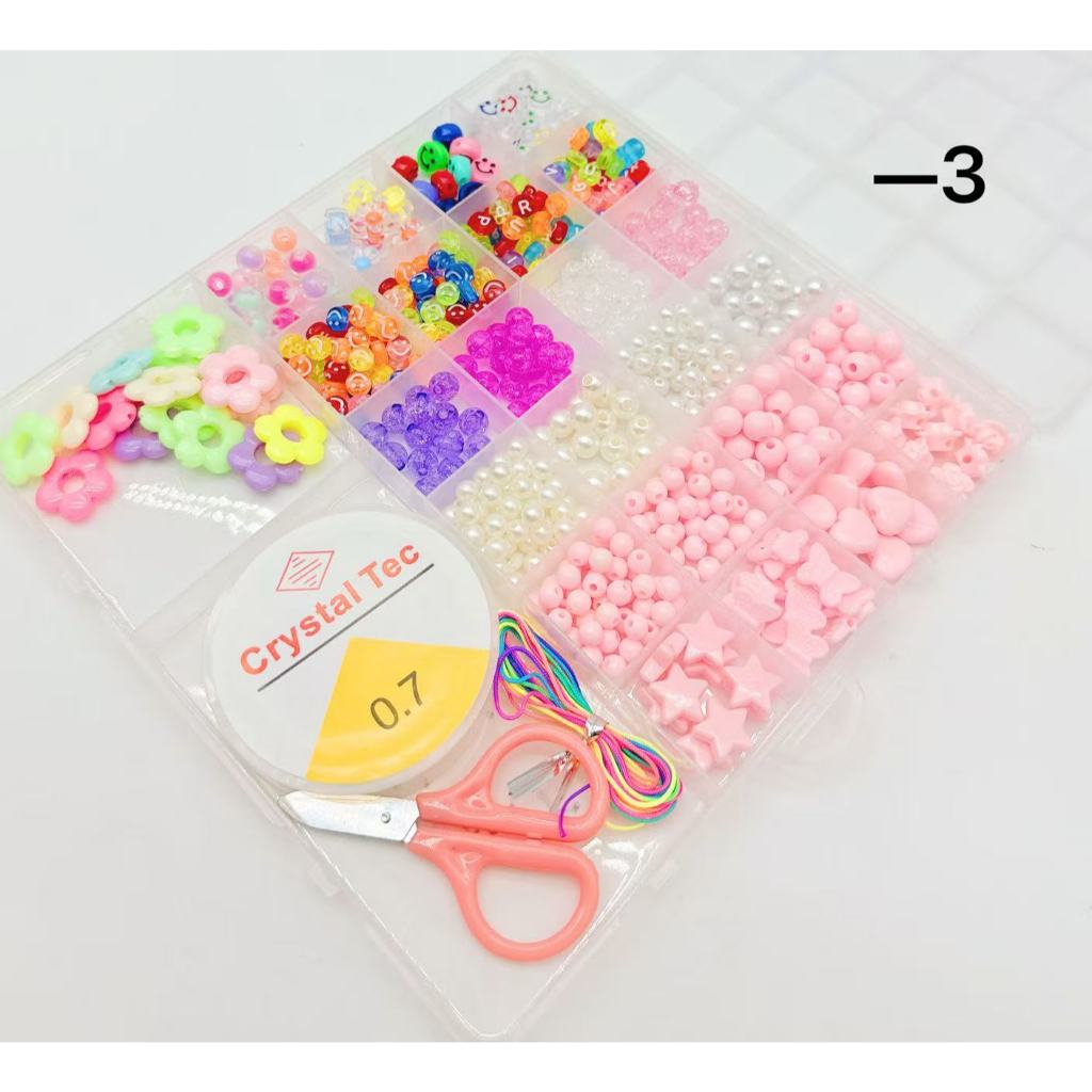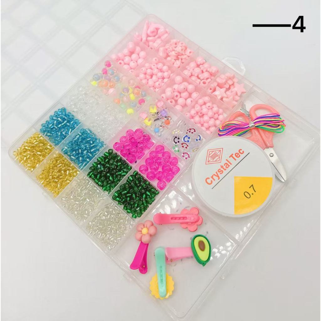 Kit Miçangas Infantil Brinquedo para Pulseira Colar colorido + Silicone e Tesoura para pluseira