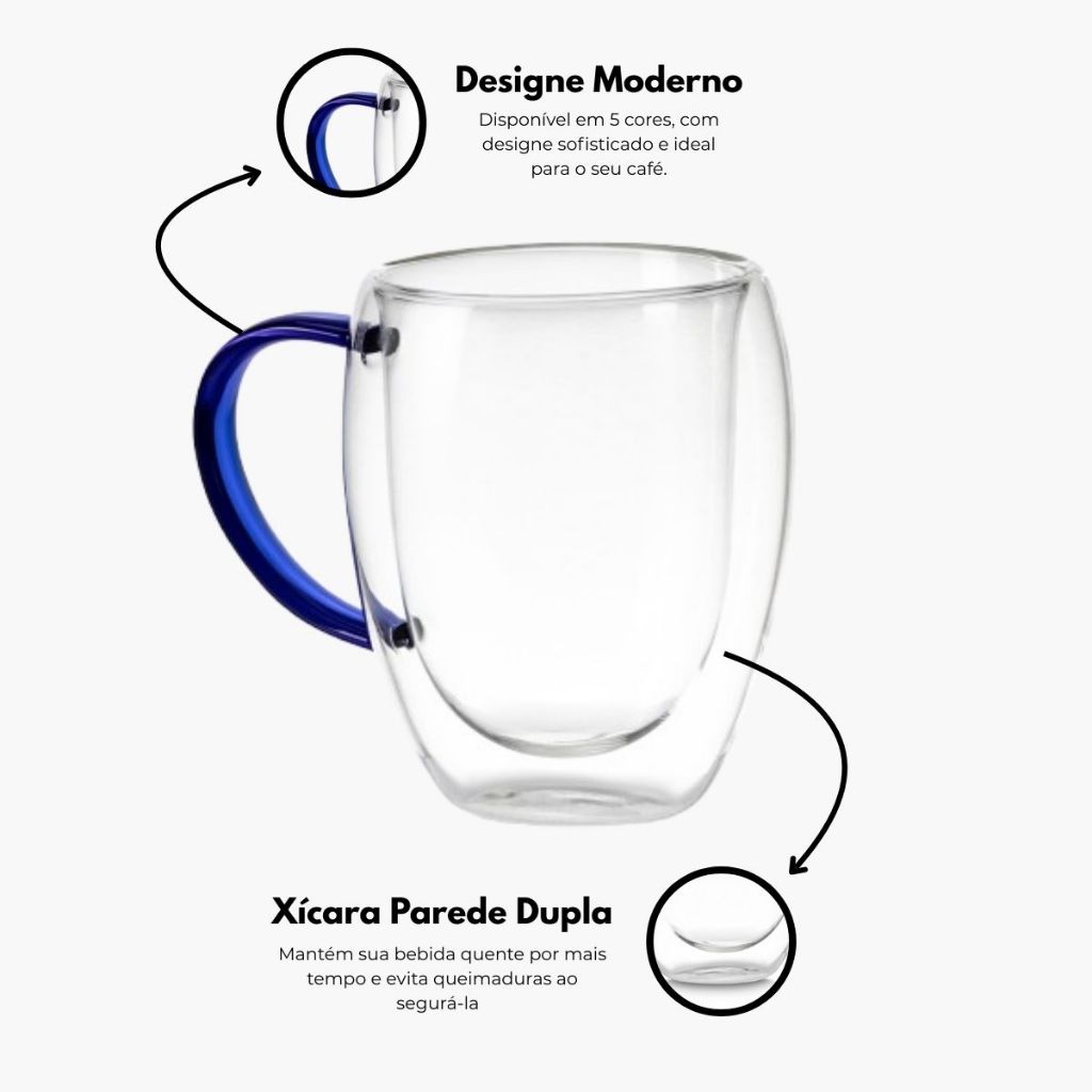 Xícara em Vidro de Borossilicato 350ml Térmica Parede Dupla Transparente Premium