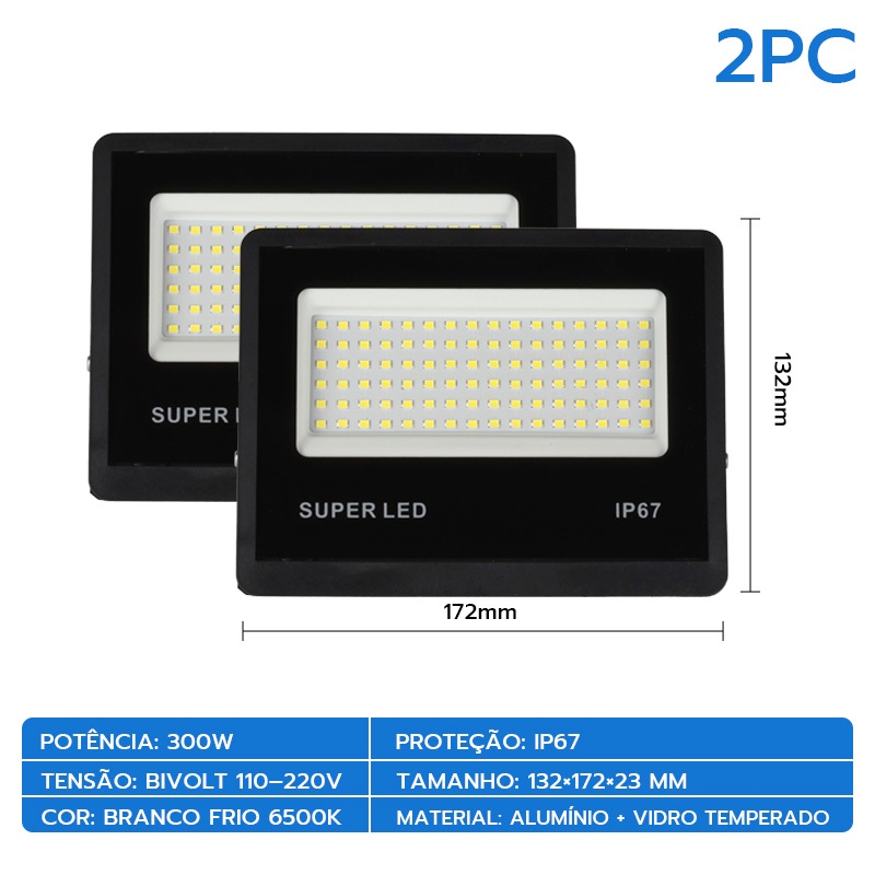 KIT 1 a 4 Refletor LED 400w Luz Frio Impermeável IP67 Super Brilhante e Economica Bivolt