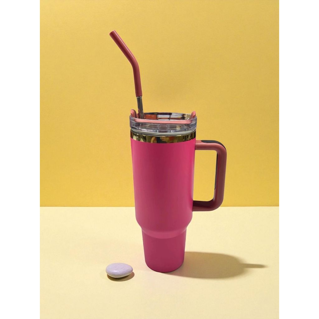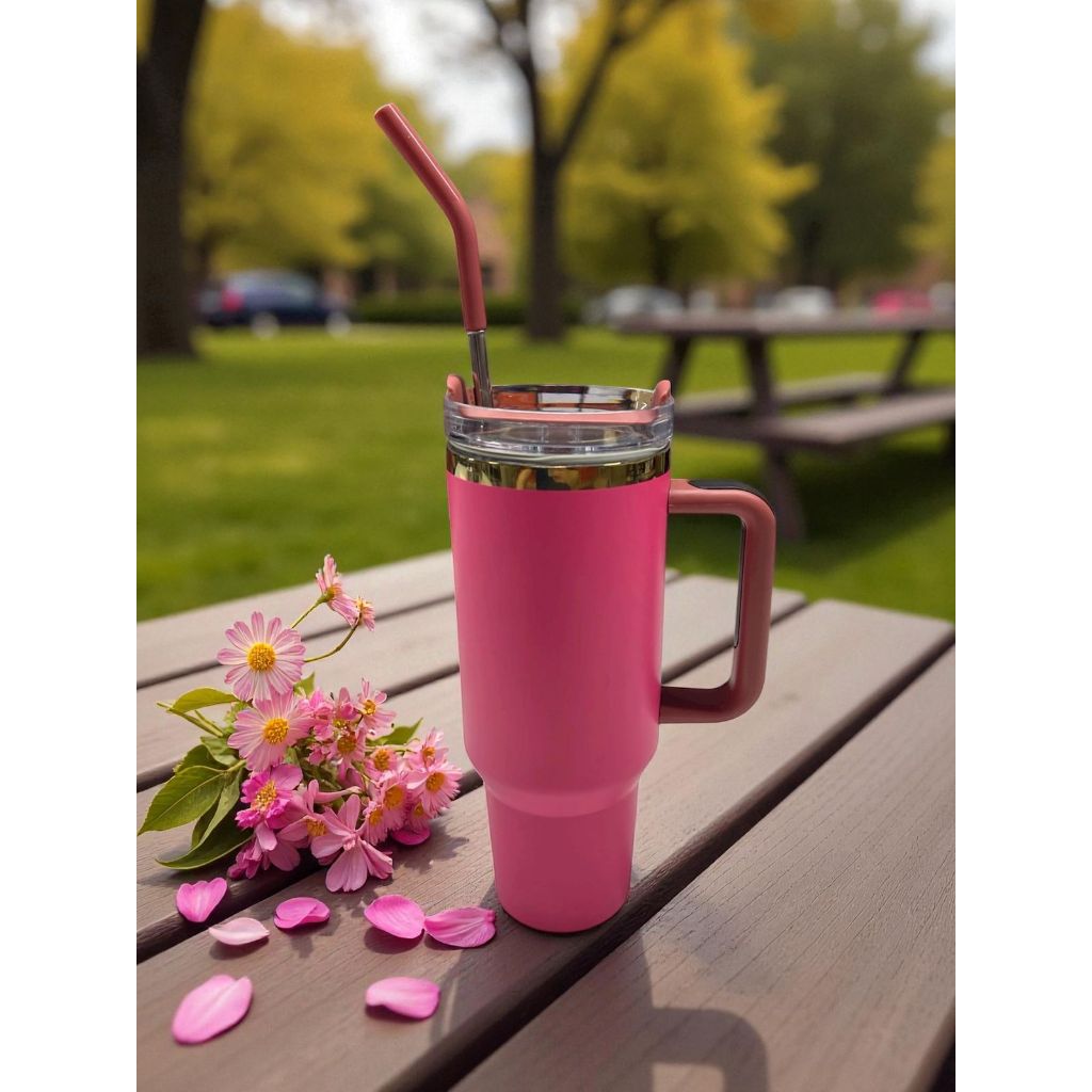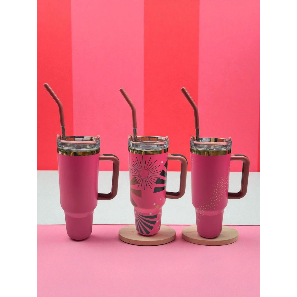 Térmica Garrafa Copo Boneca Rosa 1200ml Inox Com Tampa e Canudo de Aço