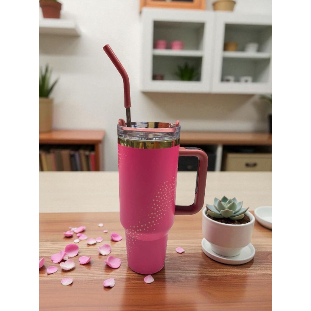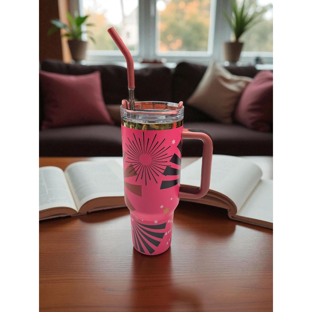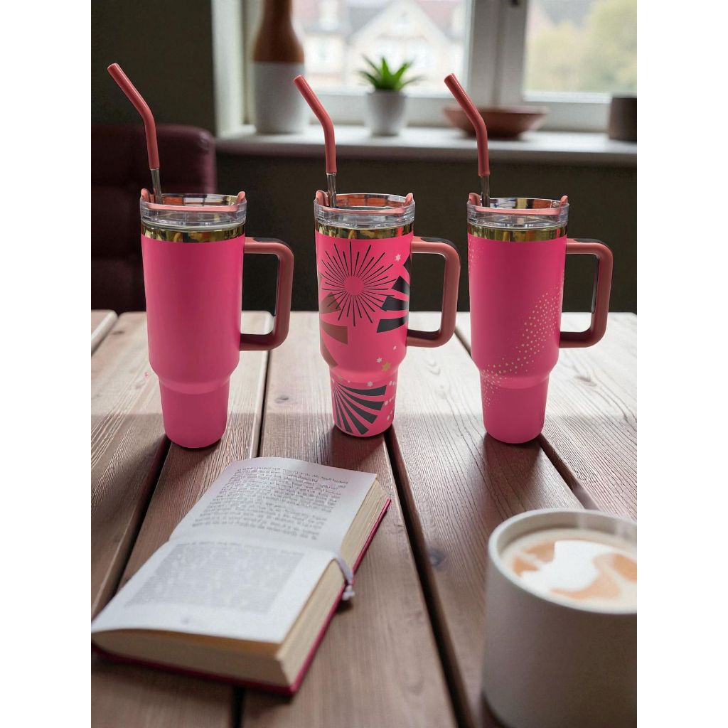Térmica Garrafa Copo Boneca Rosa 1200ml Inox Com Tampa e Canudo de Aço