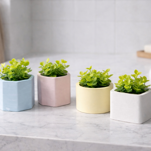 Mini Vasinho - Kit até 4 com Flores Artificiais e Sem - Gesso 6x6
