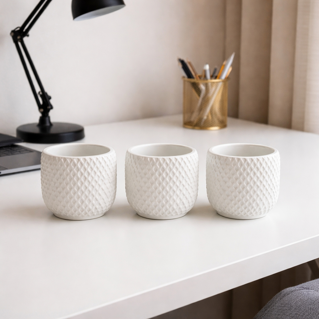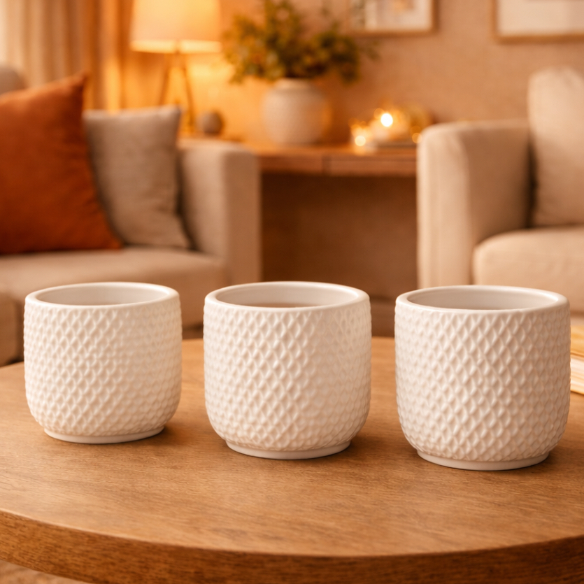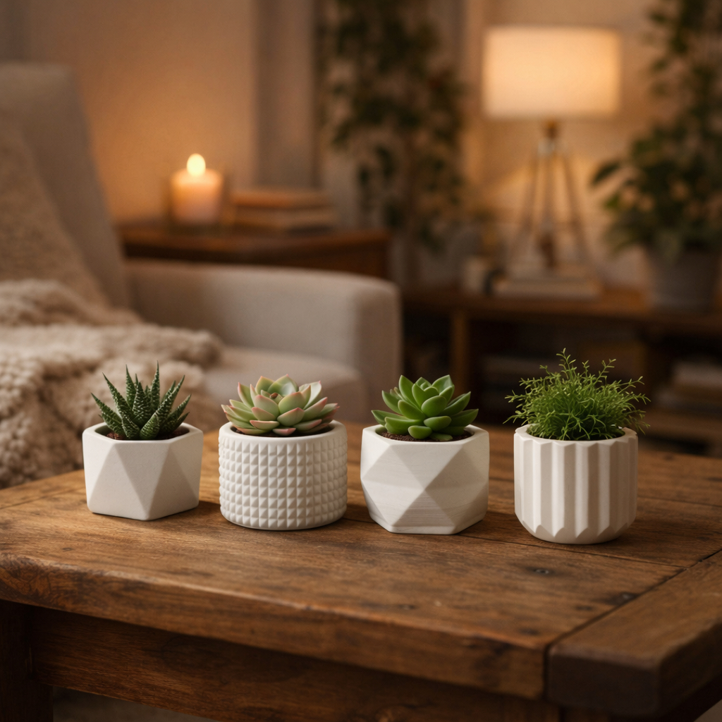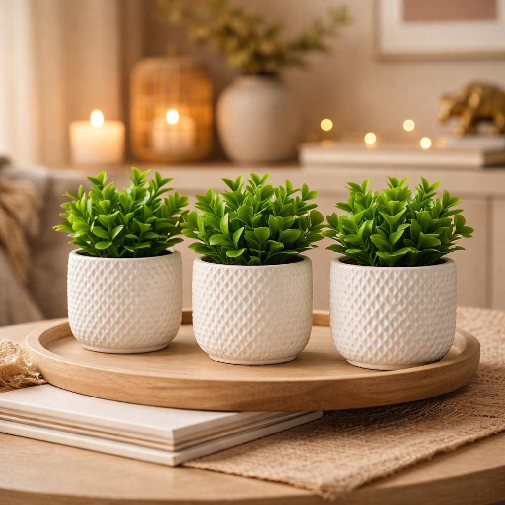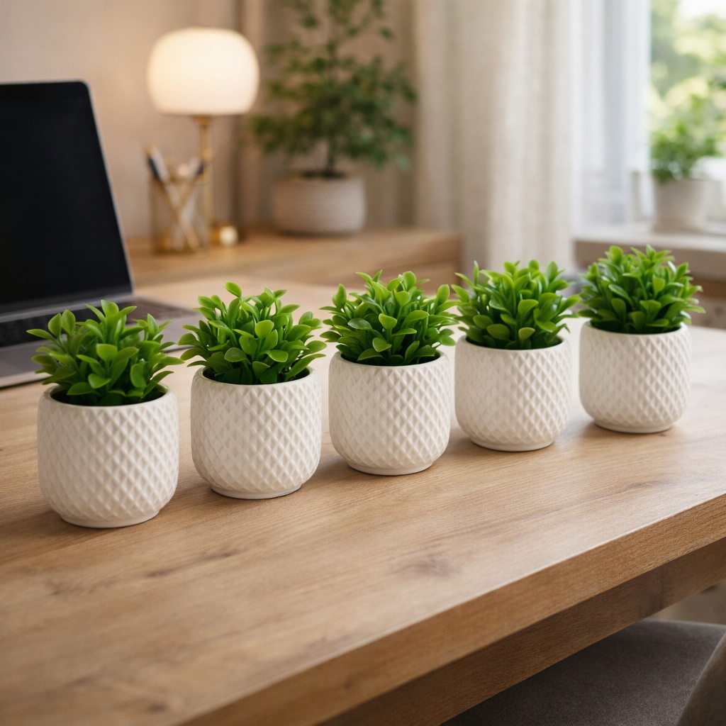 Vaso Planta Artificial- Kit até 6 Unidades Sem ou Com Plantas Artificiais- Mesa, Estante, Rack, Nicho