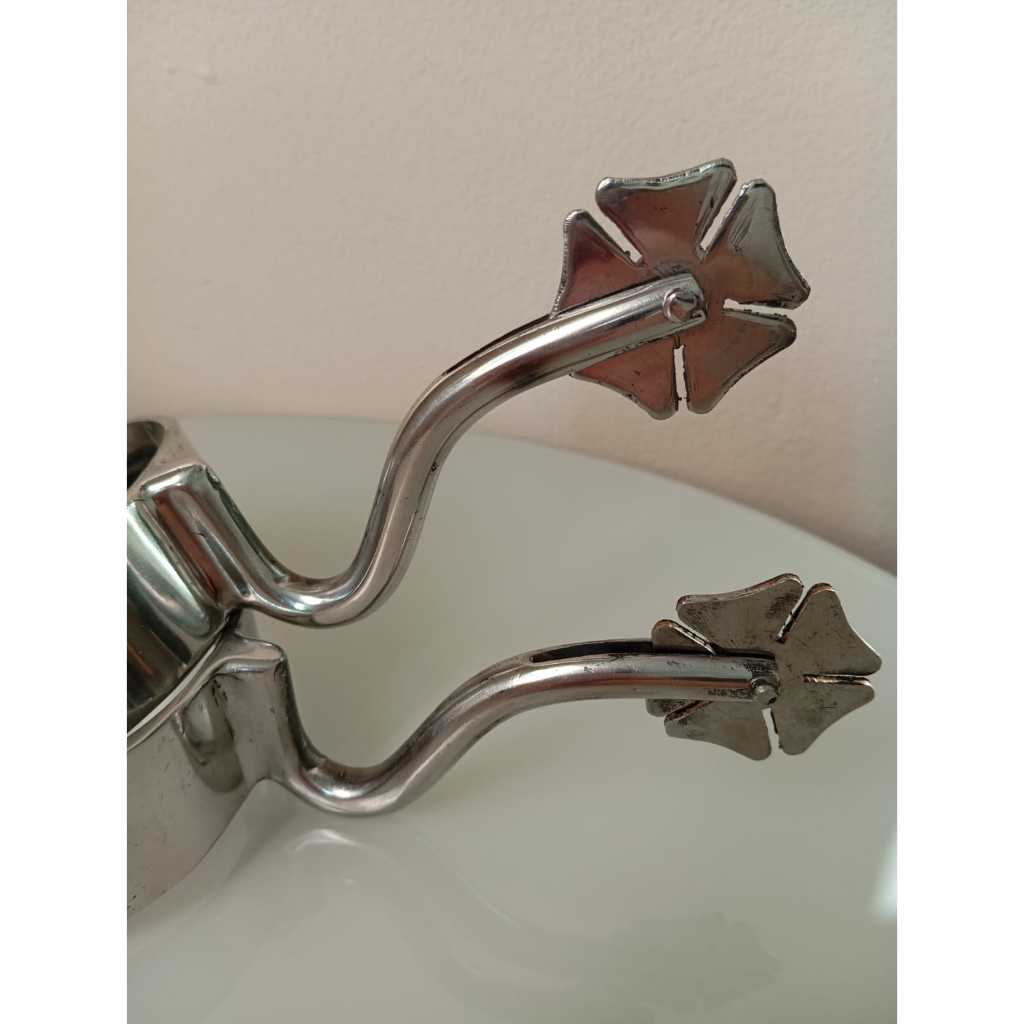 Espora QM Inox Pescoço de Ganso Roseta Trevo Para Montaria Cavalgada Passeio Estilo Envio Imediato Para Todo o Brasil