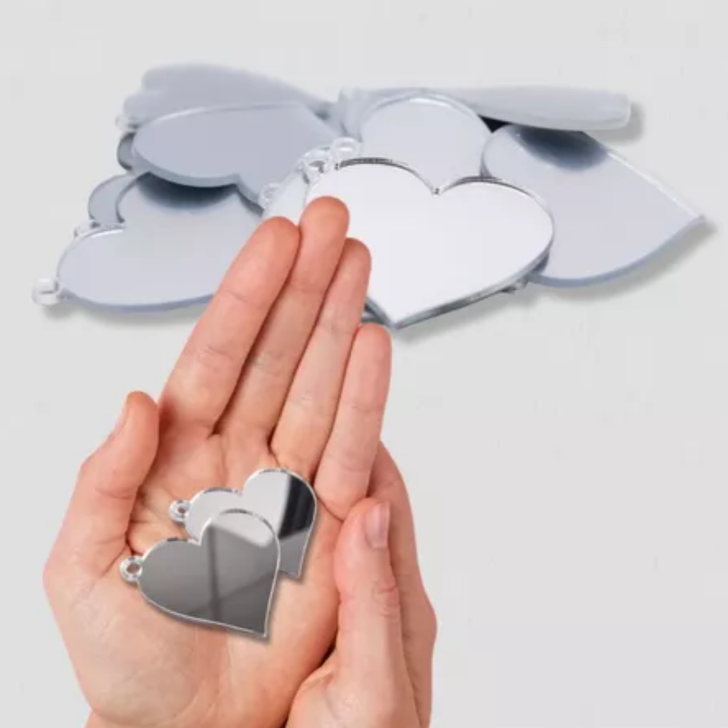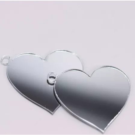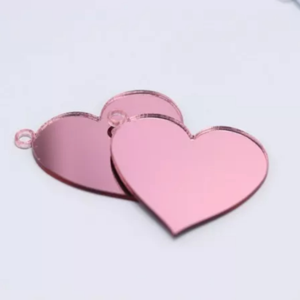 Kit 20/30/50 Mini Chaveiros Coração Acrílico Espelhado 4,5x4cm Lembrancinha Decoração