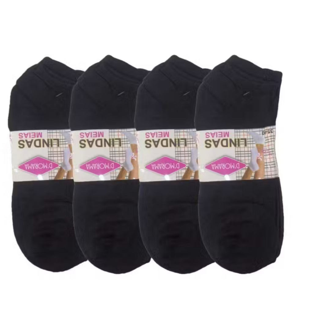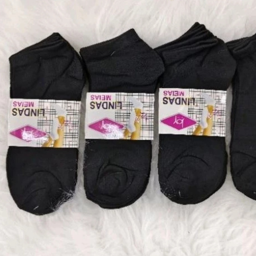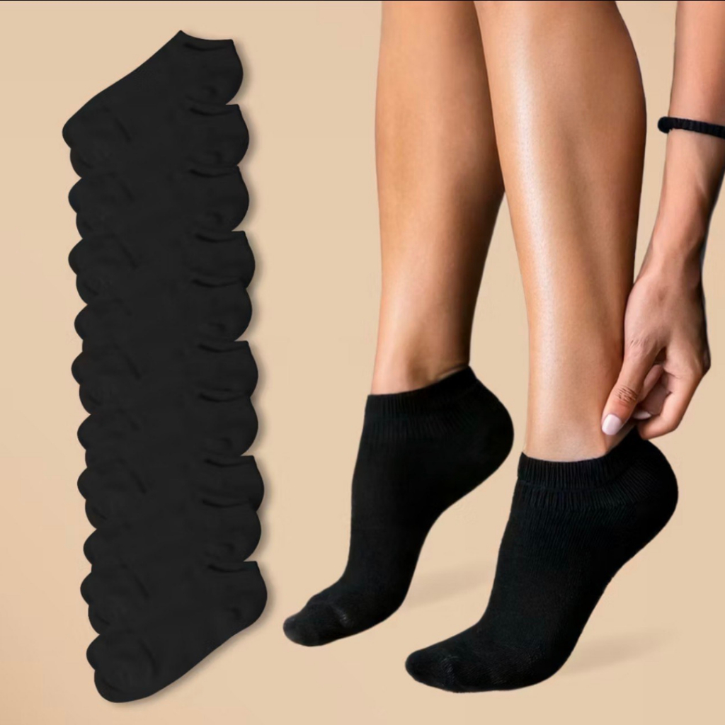 Kit 12 Pares de Meias Preta Feminina Cano Curto