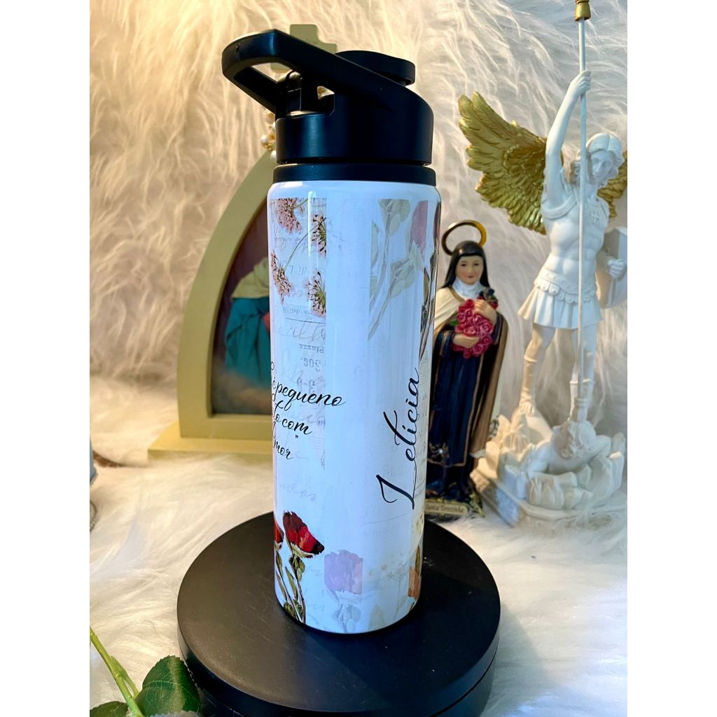 Garrafa Santa Teresinha Personalizada com Nome Arte Católica III